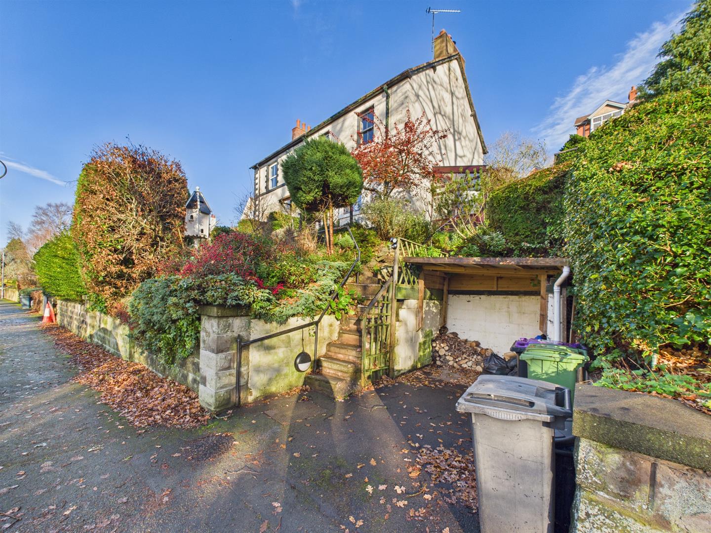 The property is approached from the roadside with off street parking for one vehicle. Steps rise to the entrance door and give access to the front garden. The front garden is laid to established borders. To the side there is a generous paved patio area providing a lovely seating area, with graveled pathway leading to the rear. Further steps lead to the raised rear garden, again with seating areas and raised borders. As the selling agent we understand there is pedestrian access to the rear.