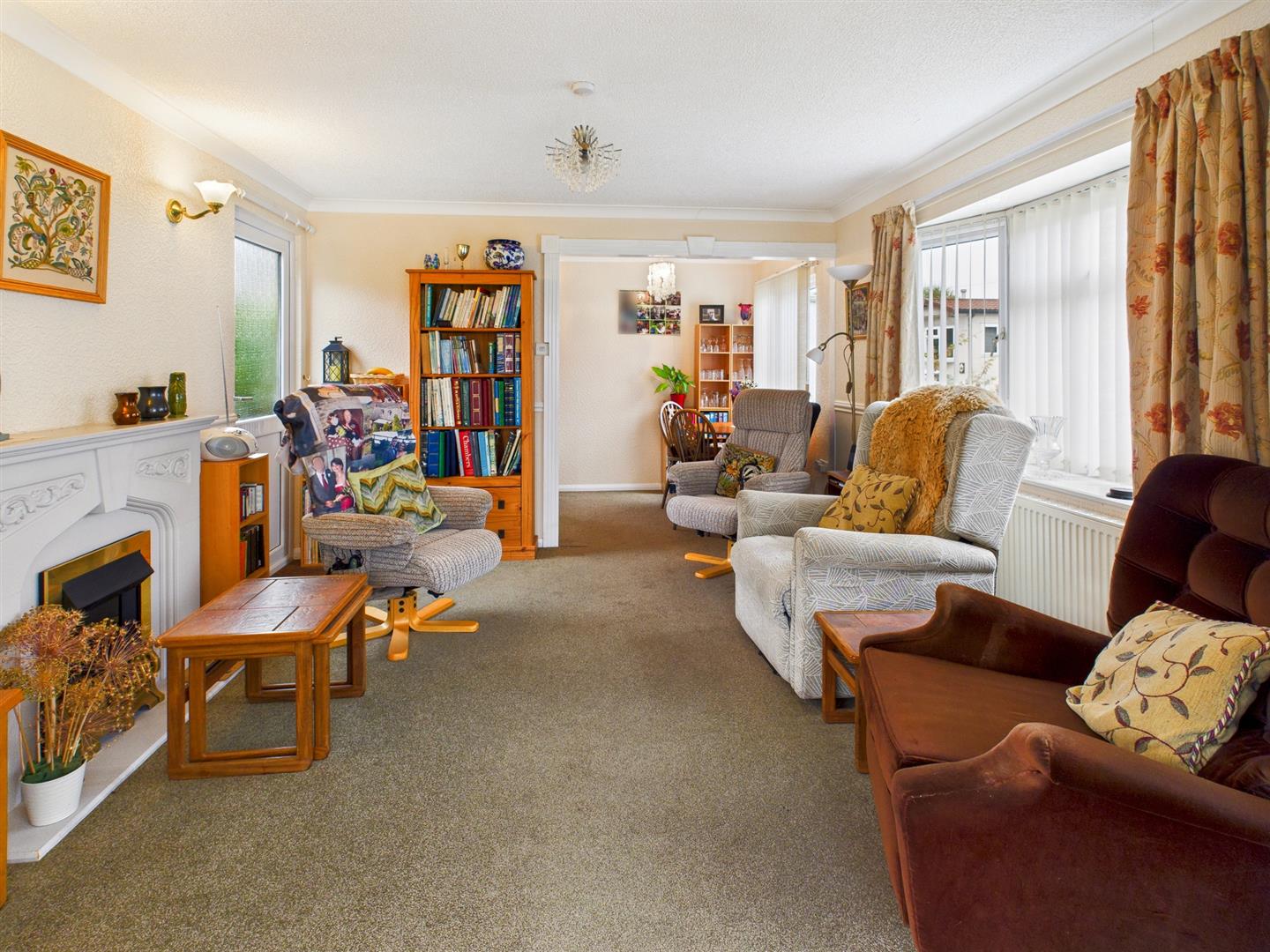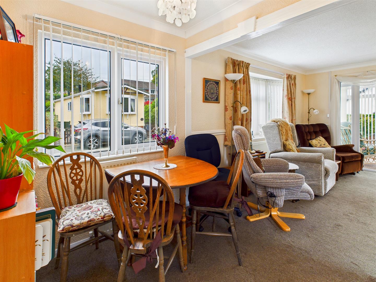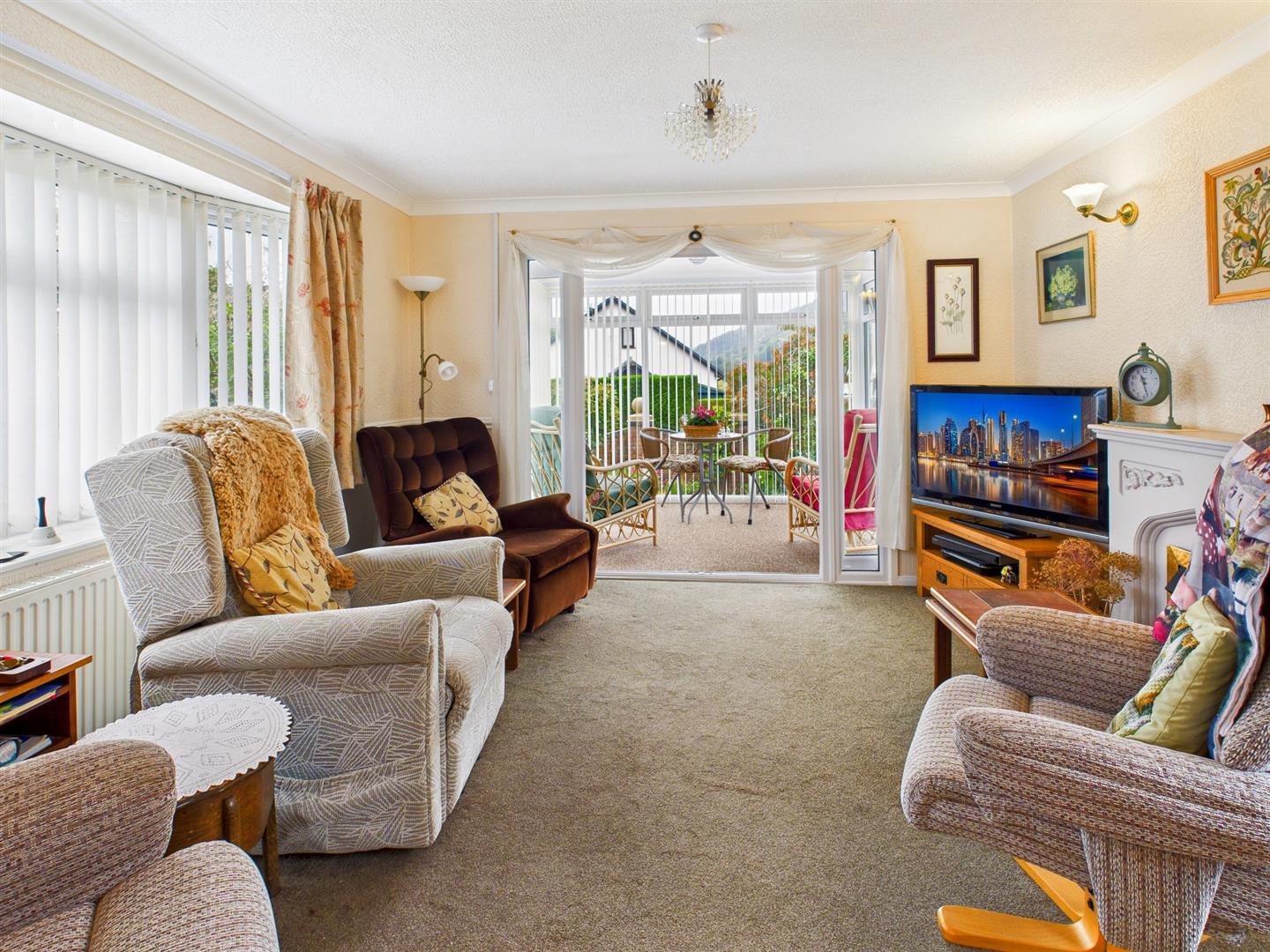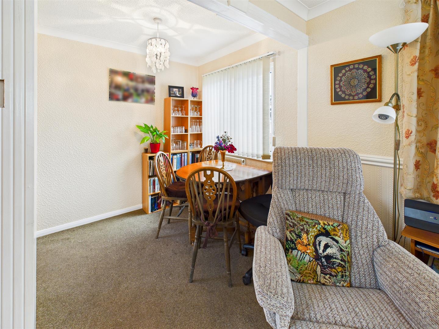 With 2 uPVC double glazed windows to the front aspect, 2 radiators, wooden fire surround with inset coal effect electric fire, coved ceiling, dado rail, composite door to the rear and uPVC double glazed French doors and side screens to: