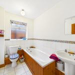 Fitted with panelled bath, low level WC and wash hand basin. tiled flooring, part tiled walls, uPVC window to the side, ceiling light and radiator.