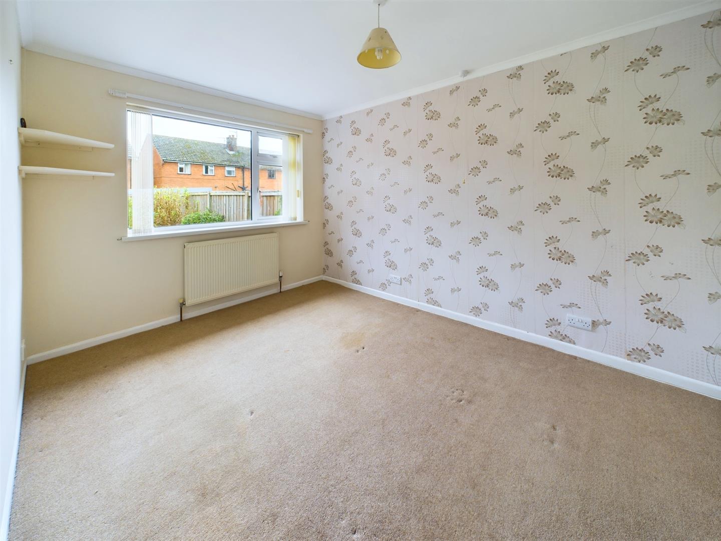 Radiator, fireplace with coal effect fire inset, coved ceiling, uPVC double glazed window to the front aspect and door to: