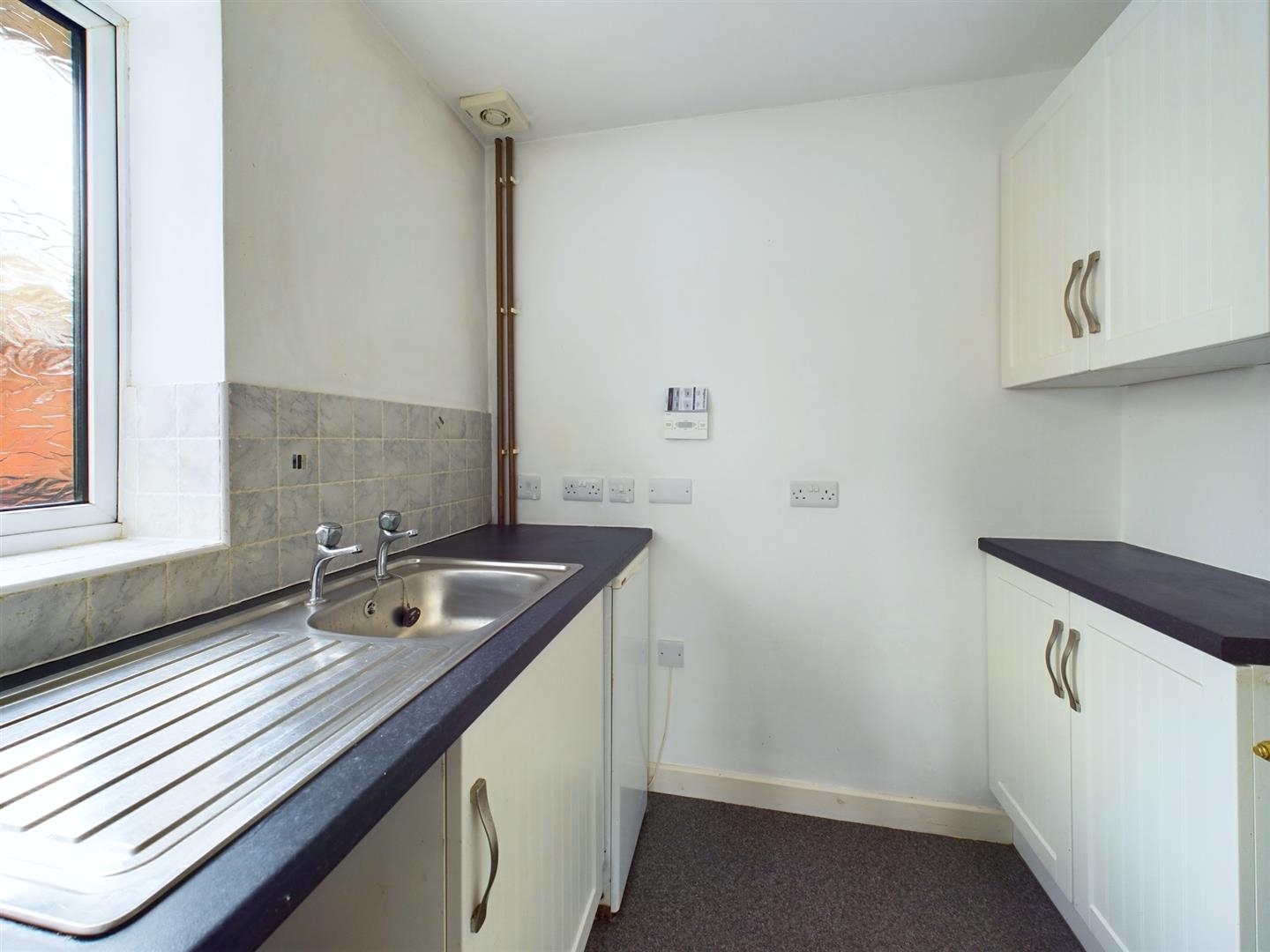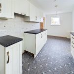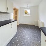 Fitted with a range of base cupboards with work surface over, matching eye level cupboards, stainless steel sink, part tiled walls, floor standing oil fired central heating boiler, appliance space and uPVC double glazed window to the side aspect.