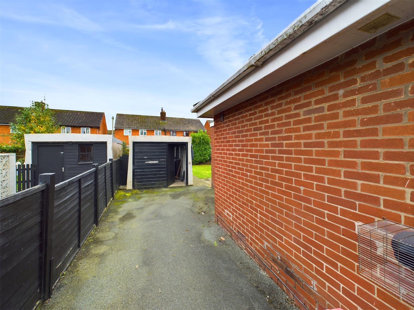 Driveway parking. Laid to lawn. Double gates leading to carport and driveway.