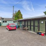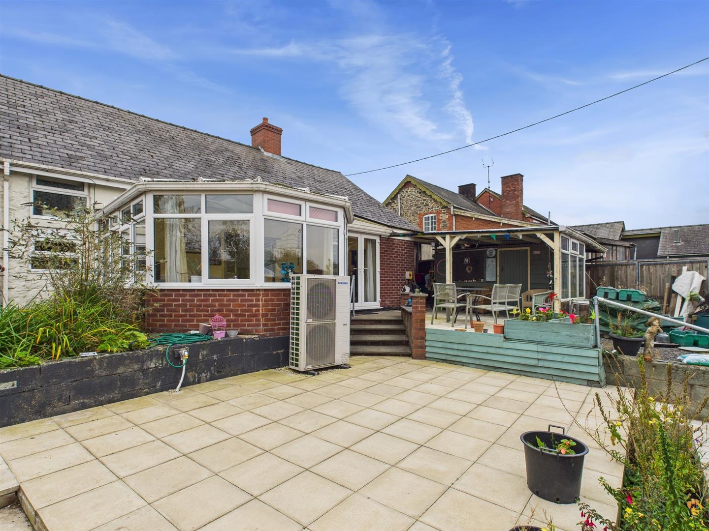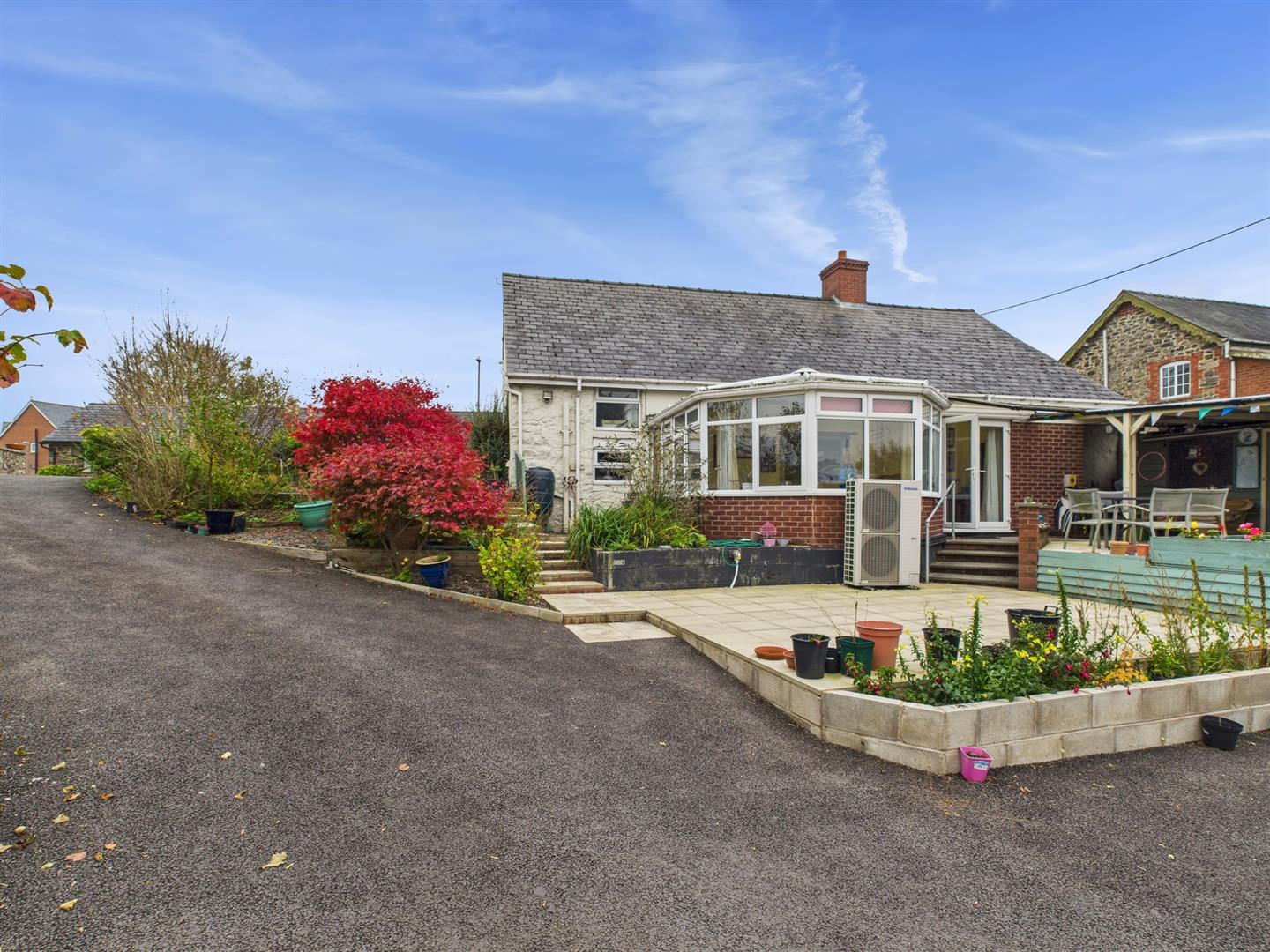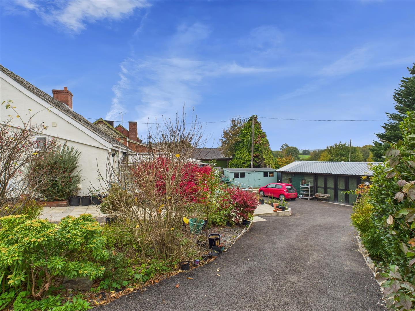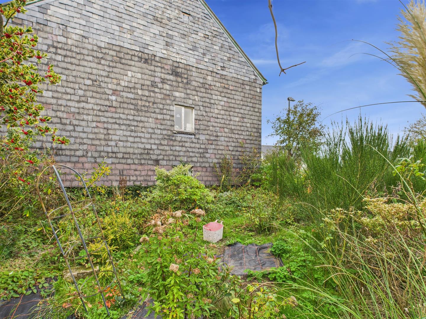 Brick wall and fencing to th4e front of the property. Gate and steps lead to a side garden with flowers and shrubs leading down to a paved patio entertainment area at the rear of the house. Leading onto a further covered patio area. Garden shed. Covered storage area. Driveway providing off road parking and turning space. Large garden shed/workshop with double doors with windows to either side. Greenhouse. Potting shed. Areas of garden with a selection of flowers, shrubs and a number of fruit trees including apple, pear and cherry.