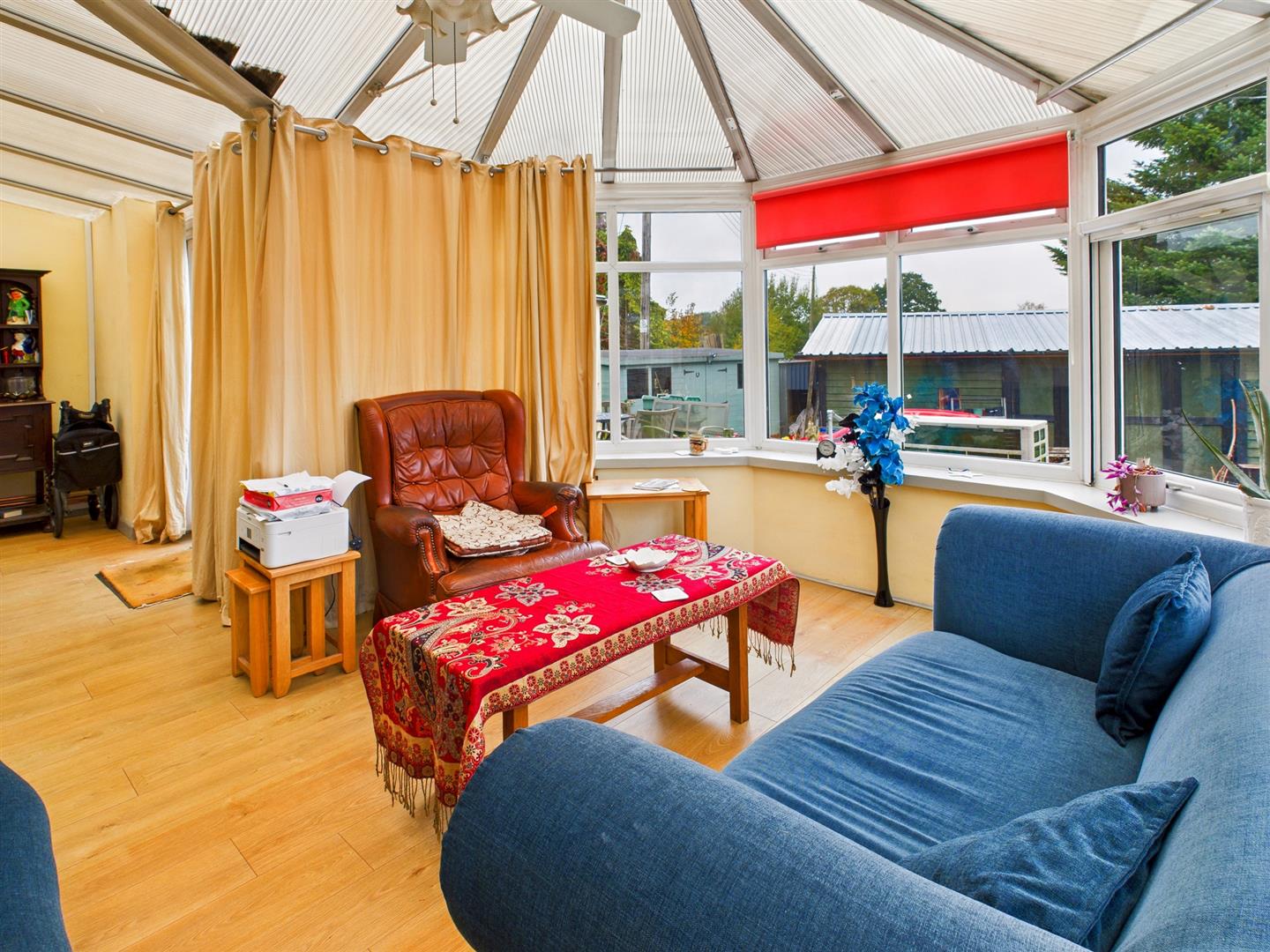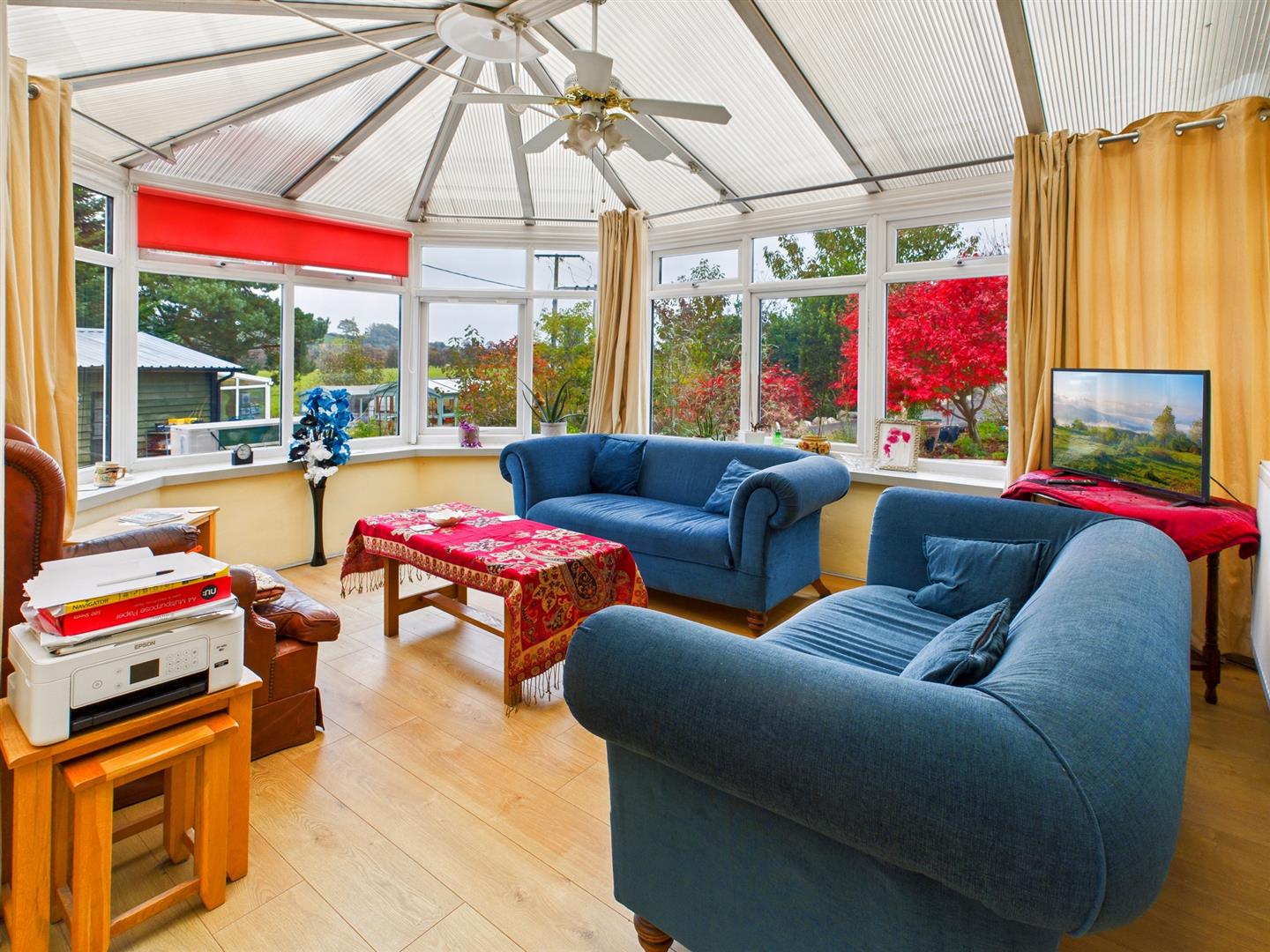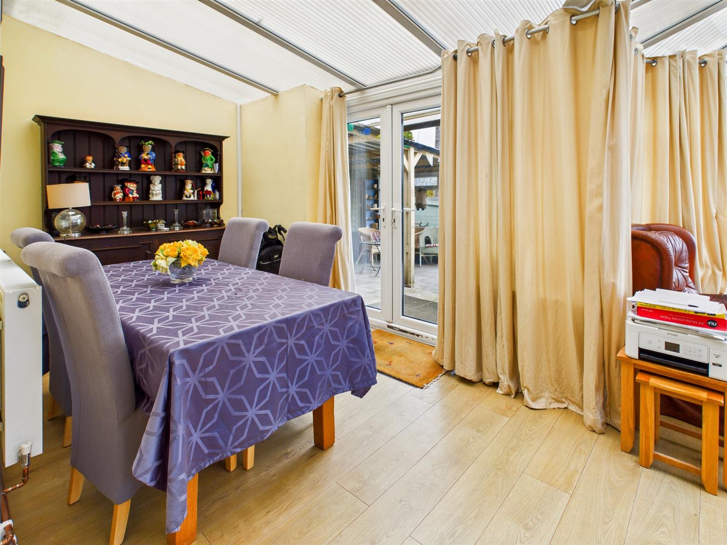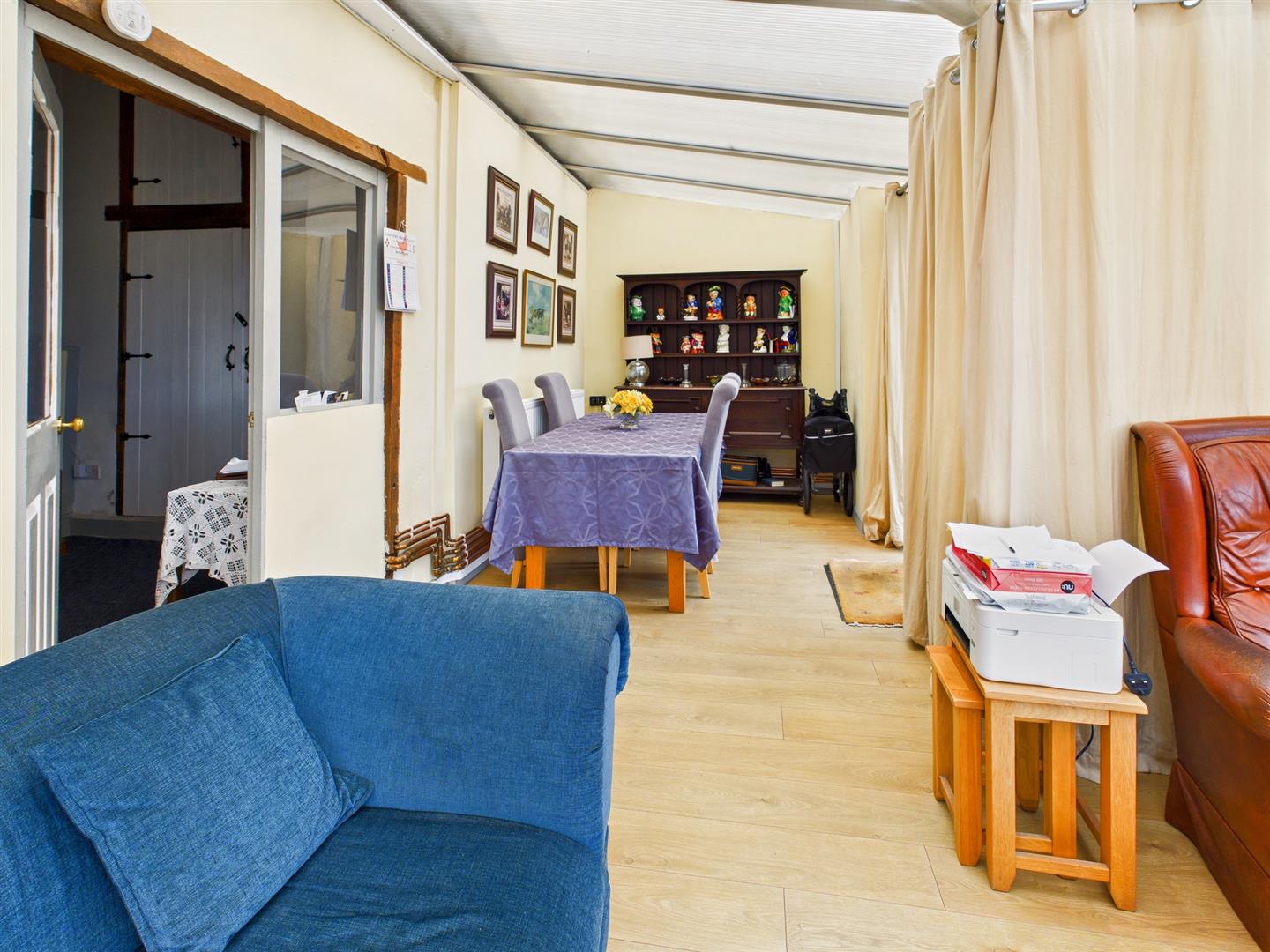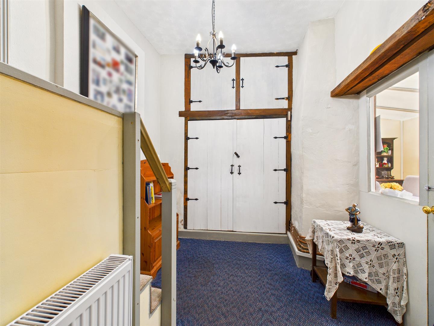Built in double cupboard with the water tank and shelving, radiator, staircase to the half landing and leading to bedroom 1 and 2 and the shower room. Door and side screen to the conservatory and doorway to: