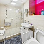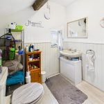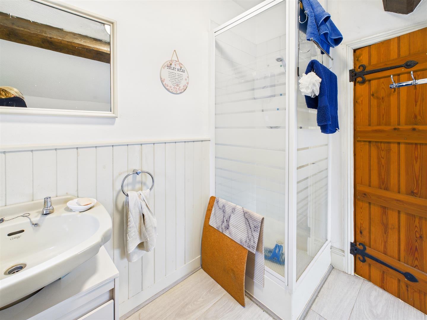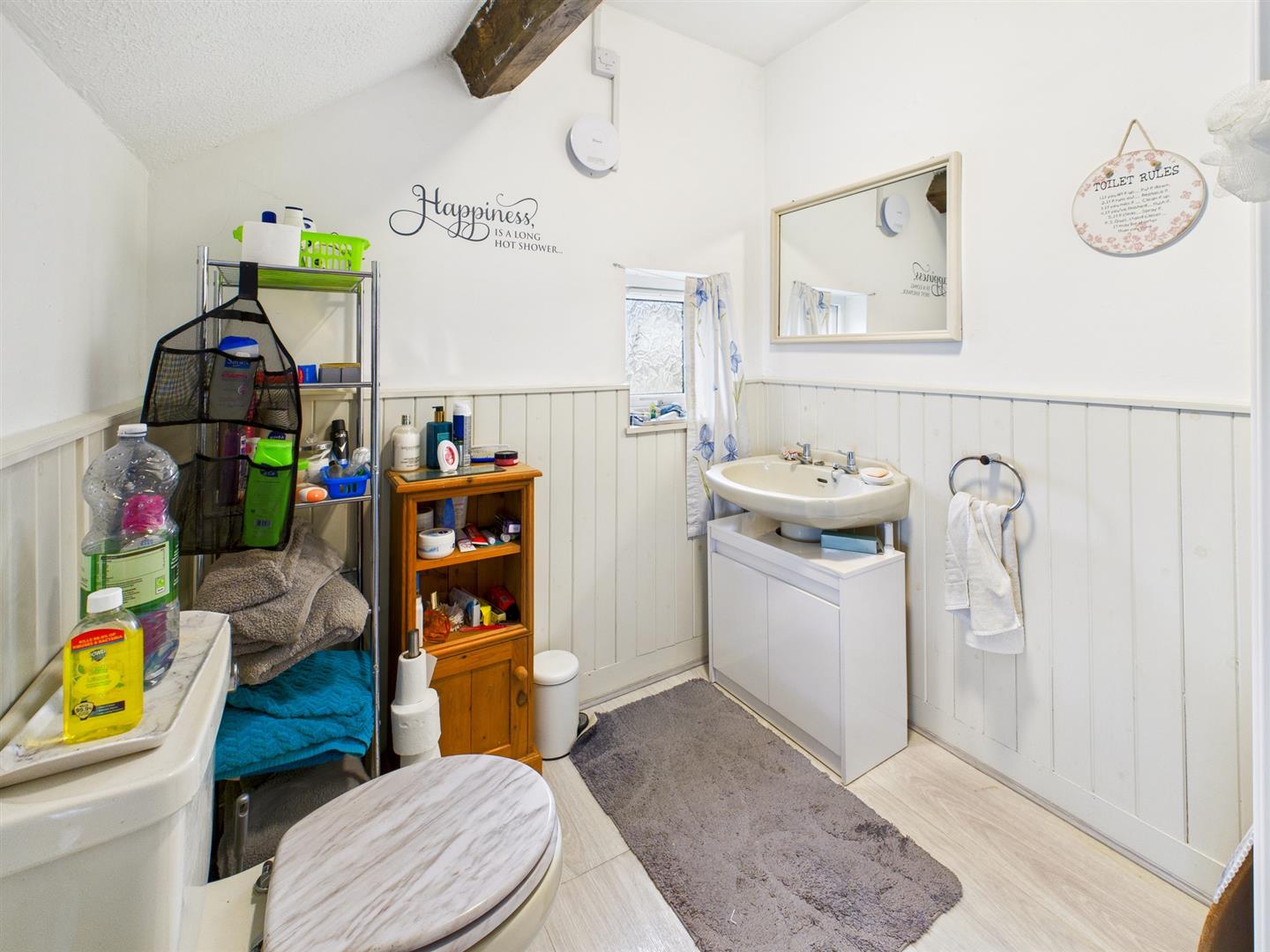 Low level W.C., shower cubicle, pedestal wash hand basin and uPVC double glaze windows to the side and rear.