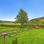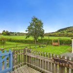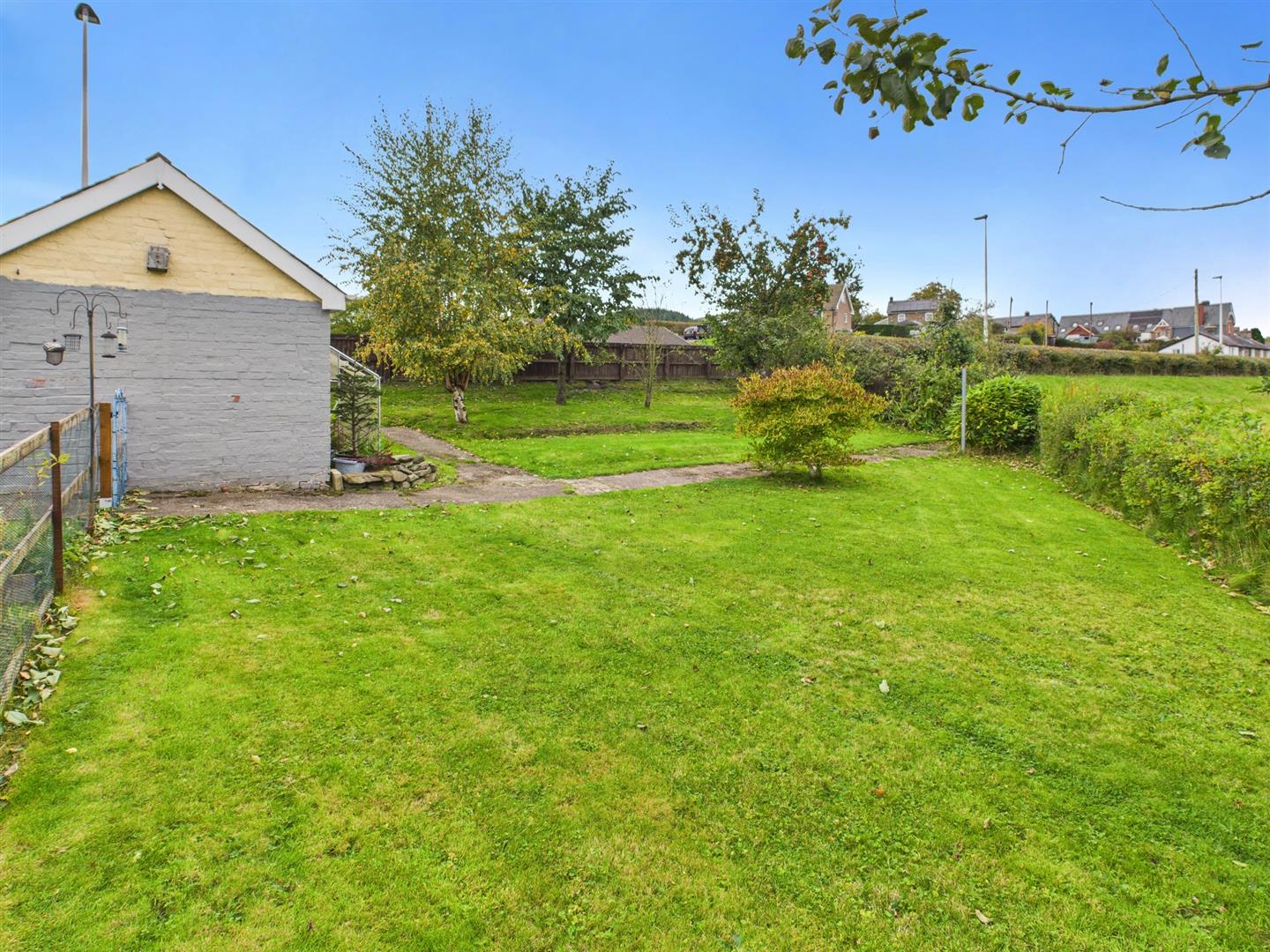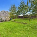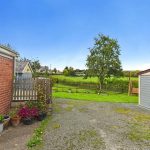 Gravel parking and turning area leading to the double garage. Area laid to lawn with a gate and path to the further lawned garden with a selection of fruit tress and enjoying views towards open countryside. Hedge and fence to boundary. Outside tap and socket. Gate to front roadside. Decked seating area leading to the kitchen.