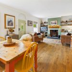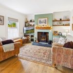 Wood effect flooring, 2 uPVC double glazed windows to the front aspect, fireplace with wooden beam and inset log burner with cupboards and shelving to the sides, 2 radiators and doorway to: