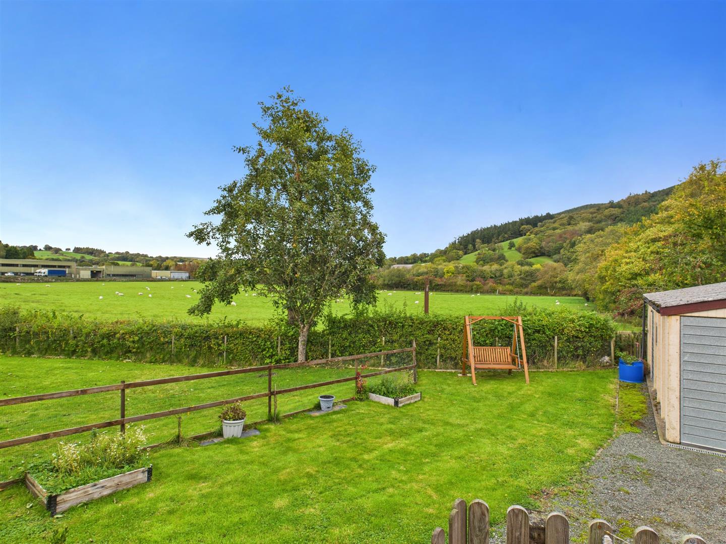 A much improved 4 bedroom detached house situated on the roadside in Carno with double garage, countryside views and a useful commercial area currently used as a hairdressing salon and shop. Gardens with a detached outbuilding and a hobby room with separate entrance.