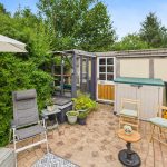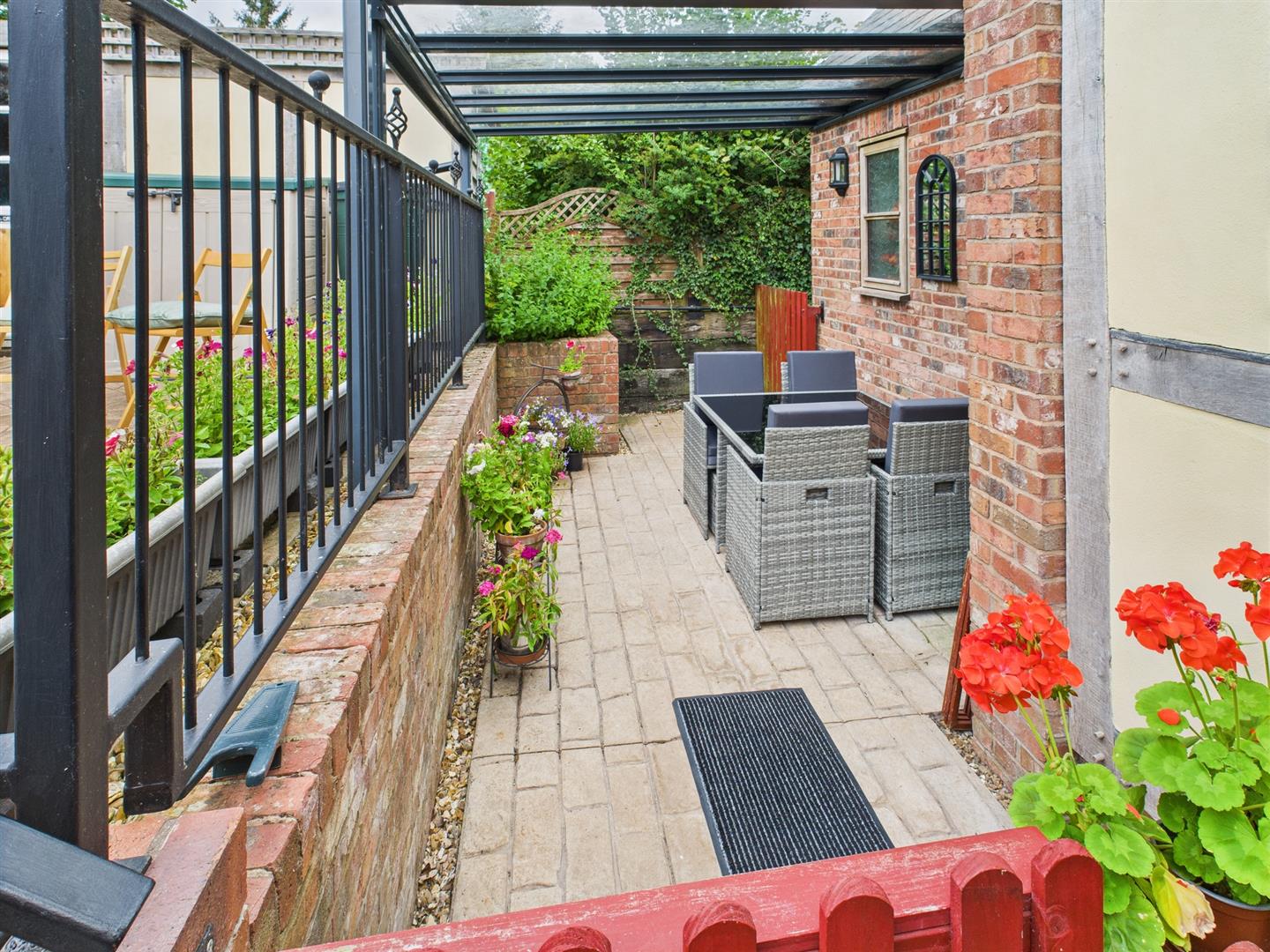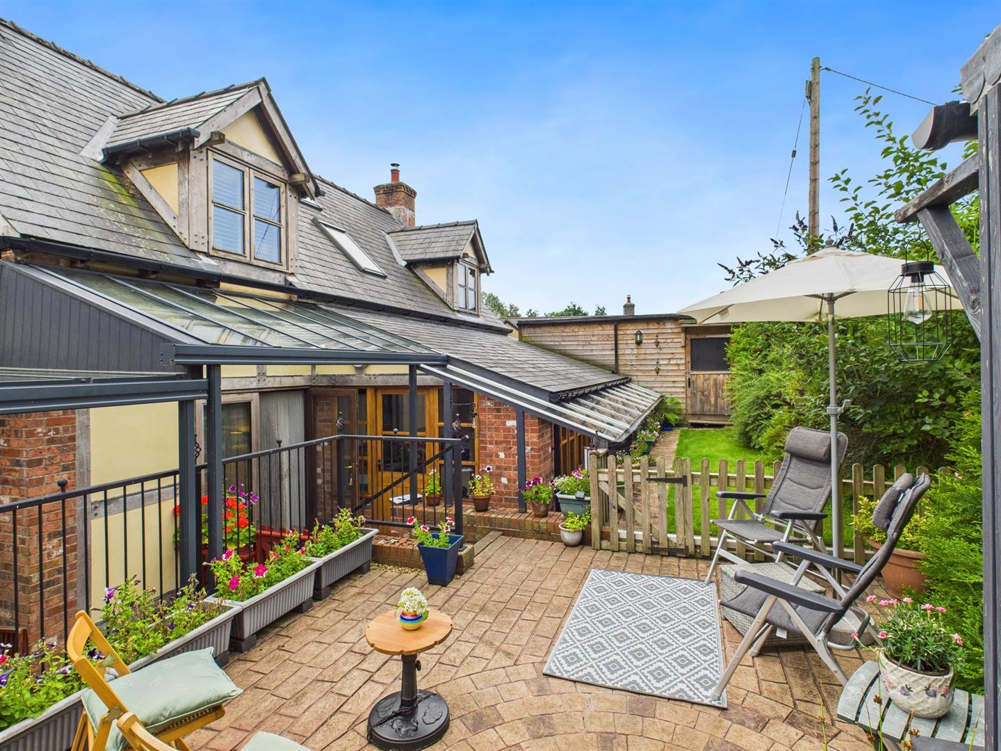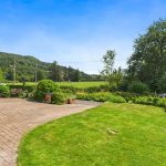 Printed concrete driveway providing parking and turning. Area laid to lawn with flower and shrub beds enjoying countryside views. Path and gate to the rear garden.