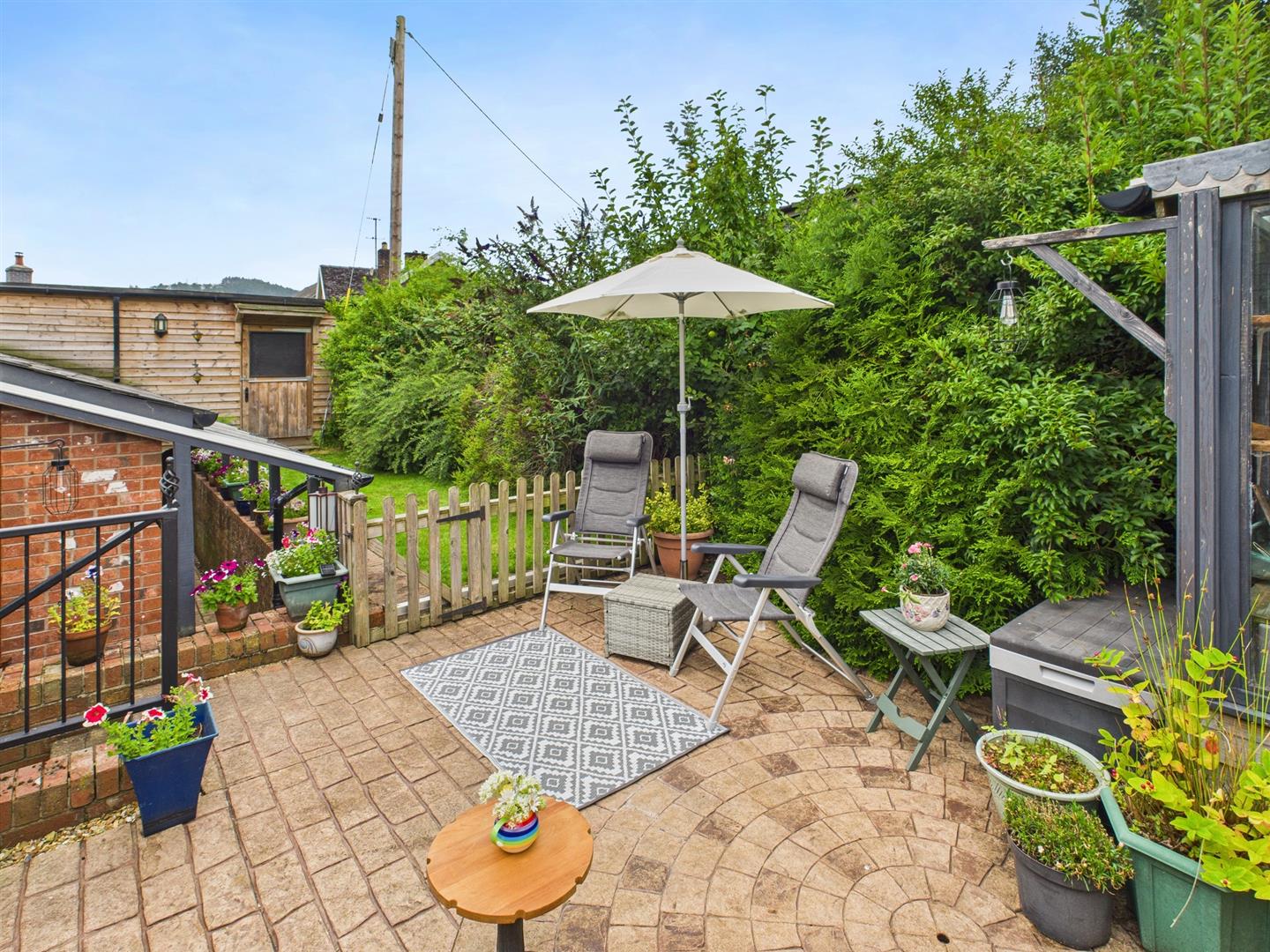 Paved with steps leading up to a patio entertainment area. Gate through to a further covered patio entertainment area and leading to the side. Covered area to the rear of the house leading to a storage area. Potting shed. Large work shop with shelving and power and light. Gate to a lawned area leading to a further workshop/shed.