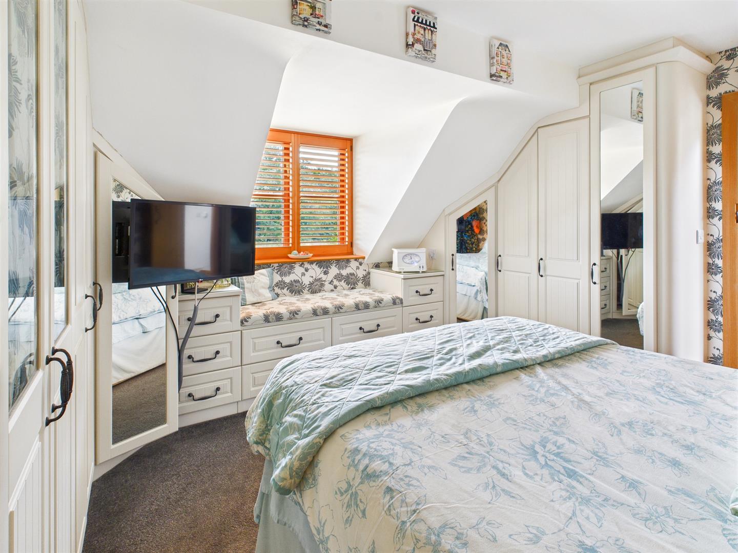 Range of built in wardrobes and drawers with window seat to the front enjoying views towards open countryside. Double doors lead to:
