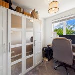 A good sized double bedroom with storage cupboard housing gas central heating boiler and a window to the front.