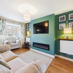 Having uPVC double glazed bay window to front, wooden style flooring, modern electric fire and understairs storage cupboard.