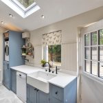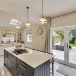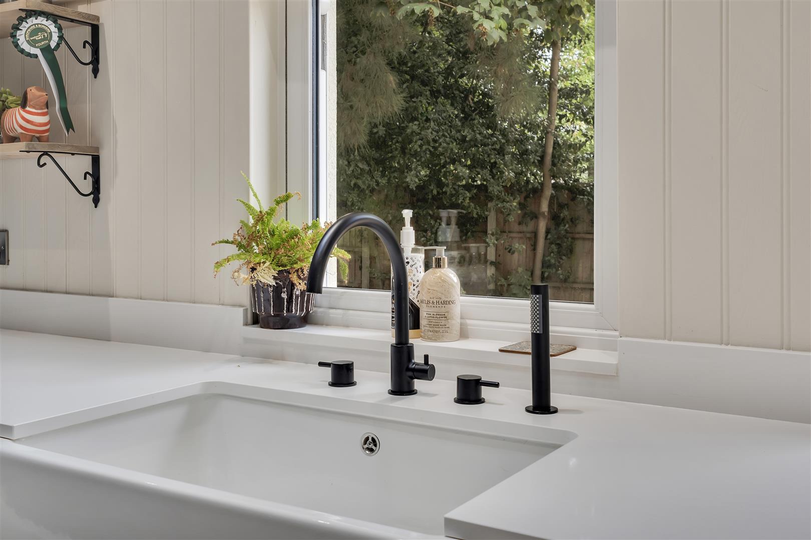 Drenched with natural light, the thoughtfully designed kitchen combines functionality with contemporary elegance. An array of tall fitted units, offer ample storage space while maintaining clean, uncluttered lines.