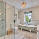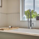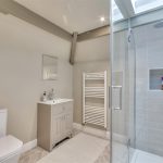Also on this floor is the beautifully finished family bathroom — a standout feature of the home — boasting a freestanding bath, a large shower and a hand wash basin set into contemporary vanity units. With stylish fixtures and a calm, neutral palette, this space is both functional and luxurious.