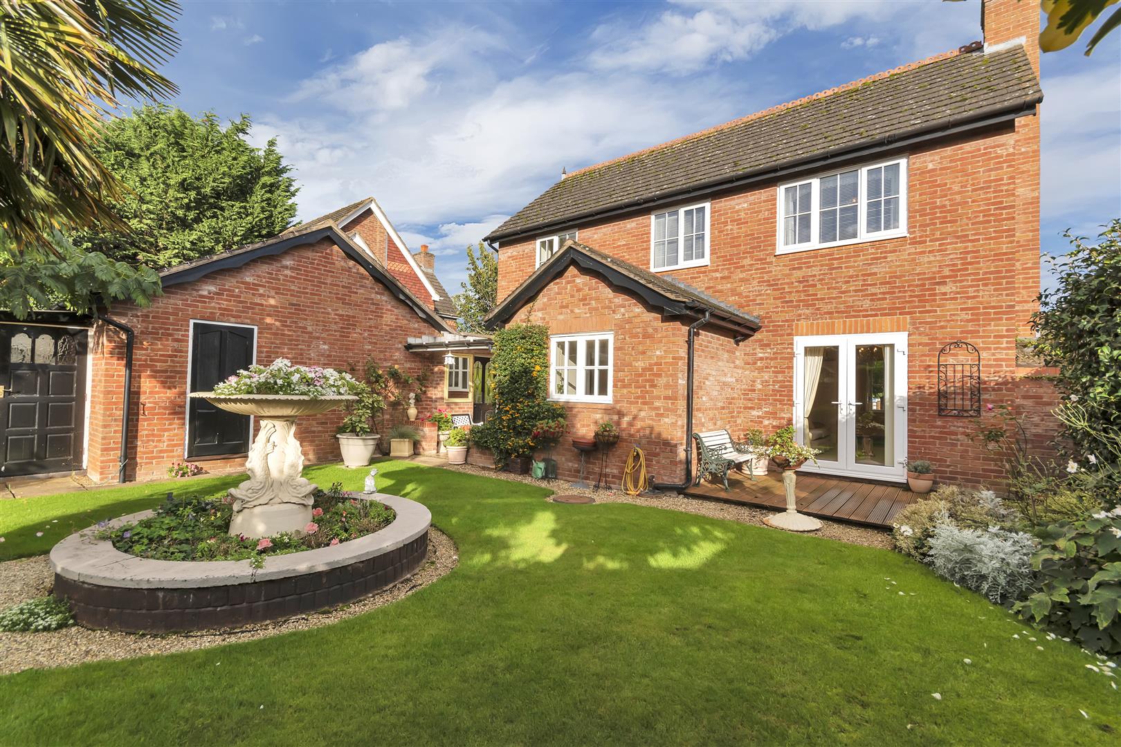 The enclosed walled garden, to the rear, has a diverse and original range of plants, trees, and shrubs making for an exceptionally, beautiful private space. A fountain has been repurposed to create flowering beds, to match a number of herbaceous borders surrounding the garden. Large double doors allow access from the road while a covered rear porch has a further pedestrian door from the driveway. A decking area makes an excellent sun-trap also accessed via patio doors from the Living Room.