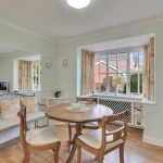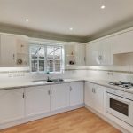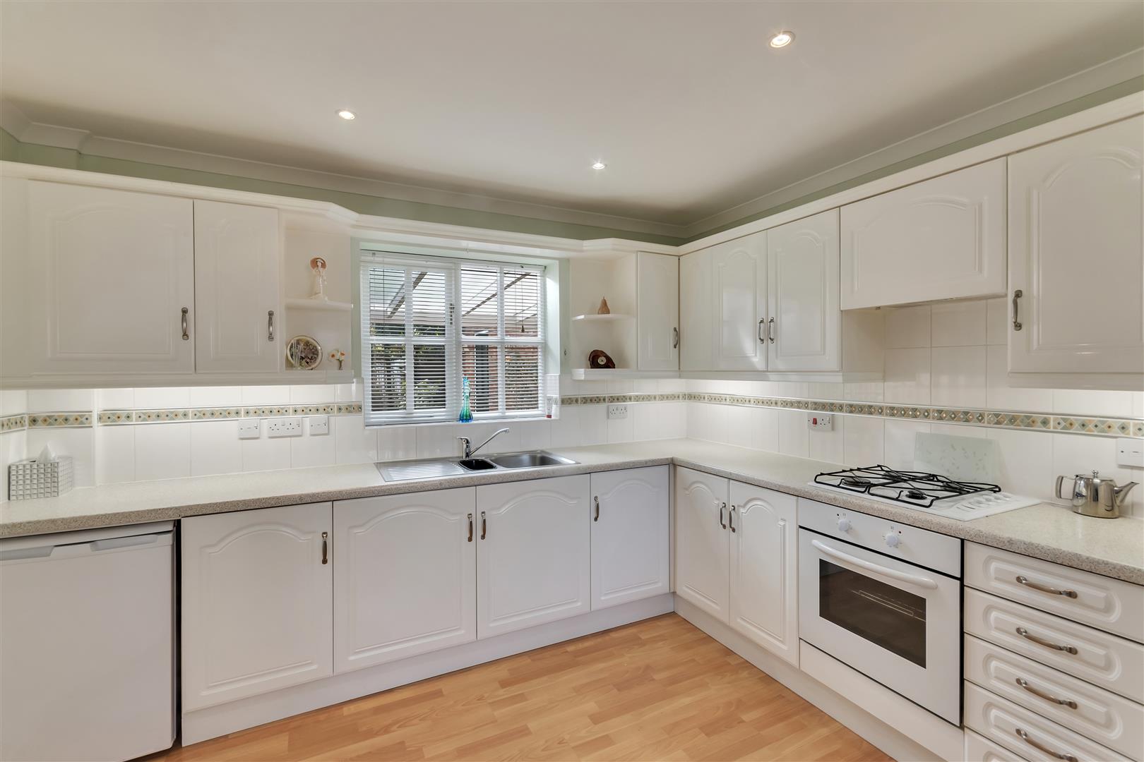 Laminate wood effect flooring, front aspect double-glazed wooden frame bay window, rear aspect double-glazed wooden frame window, built-in base and wall units with laminated worktops including an integral one-and-a-half bowl stainless-steel sink with drainer, a four-ring gas hob with hidden extractor hood, and an electric low-level oven, and two radiators.