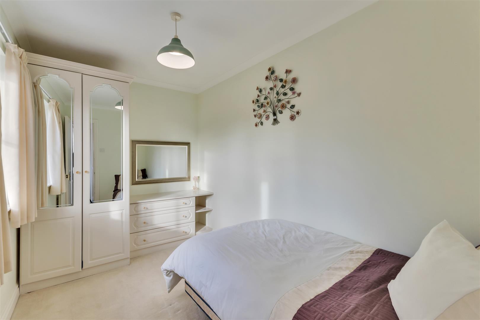 Single bedroom with carpet flooring, rear aspect uPVC double-glazed window, fitted double wardrobe with an attached chest of drawers, and one radiator.