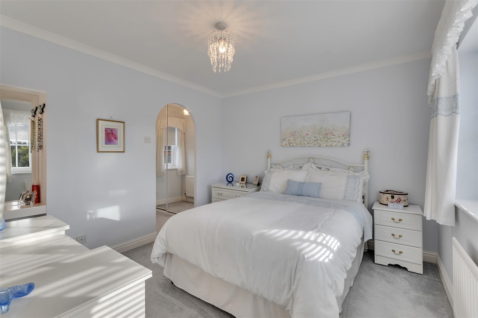 An open archway leads to a dressing room area with a rear aspect uPVC double-glazed window, a double wardrobe with mirrored sliding doors, and one small radiator.