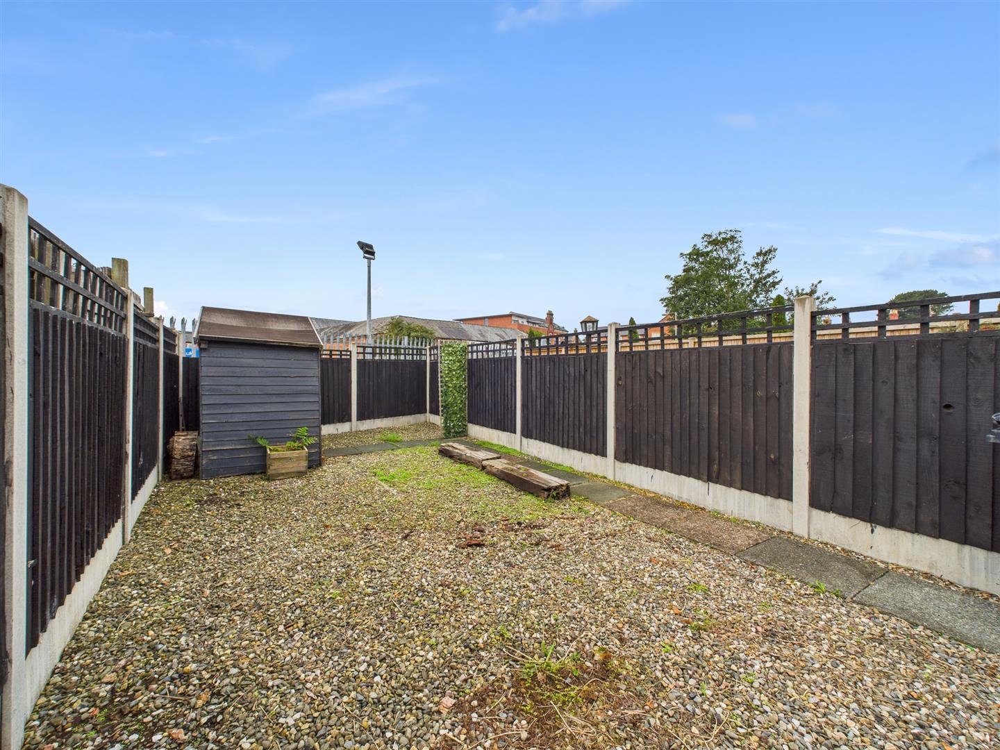 There is a rear courtyard leading off the kitchen which is gated. There is a pathway giving a right of way for the neighbouring properties to access the end of the terrace to take out the wheelie bins. There is then a further gravelled garden area with shed.