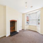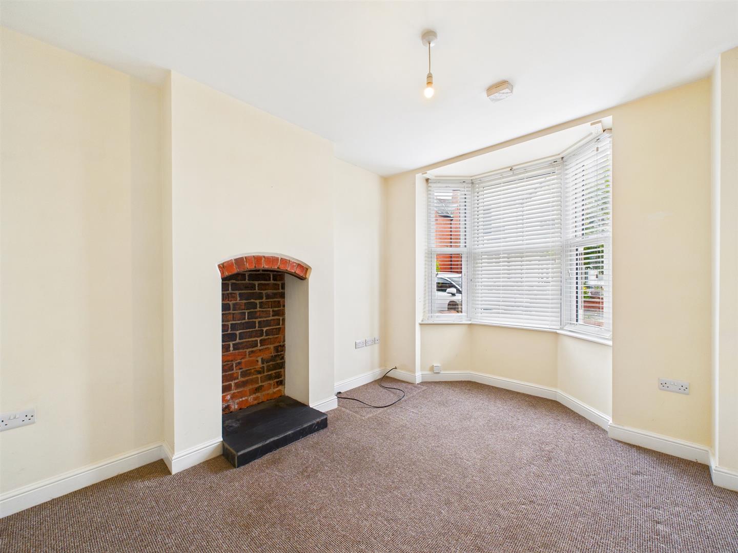 With bay window to the front, feature fireplace, radiator and ceiling light.