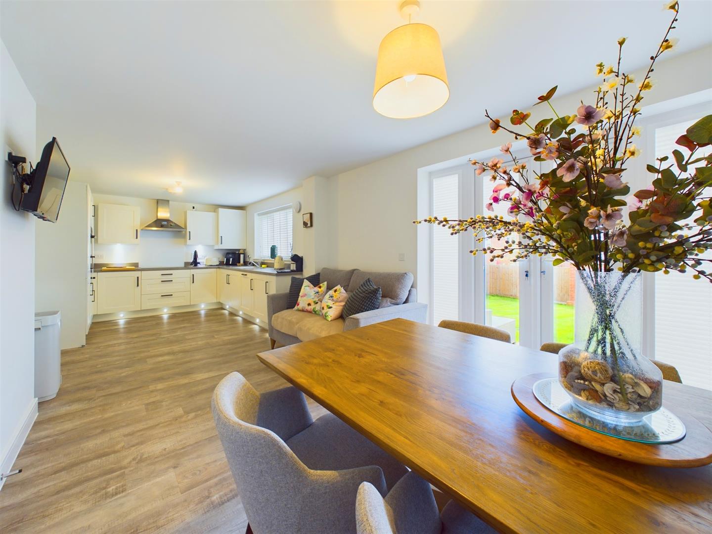 The property occupies an enviable position set back from the road with driveway providing parking and Ev charging point and leading to the Garage. The Garage has an up and over door to front. The Rear Garden is a particular feature of the property, being South facing, mainly laid to lawn with paved sun terrace, adjacent to the Dining Area, perfect for dining alfresco. The Garden is fully enclosed with fencing.