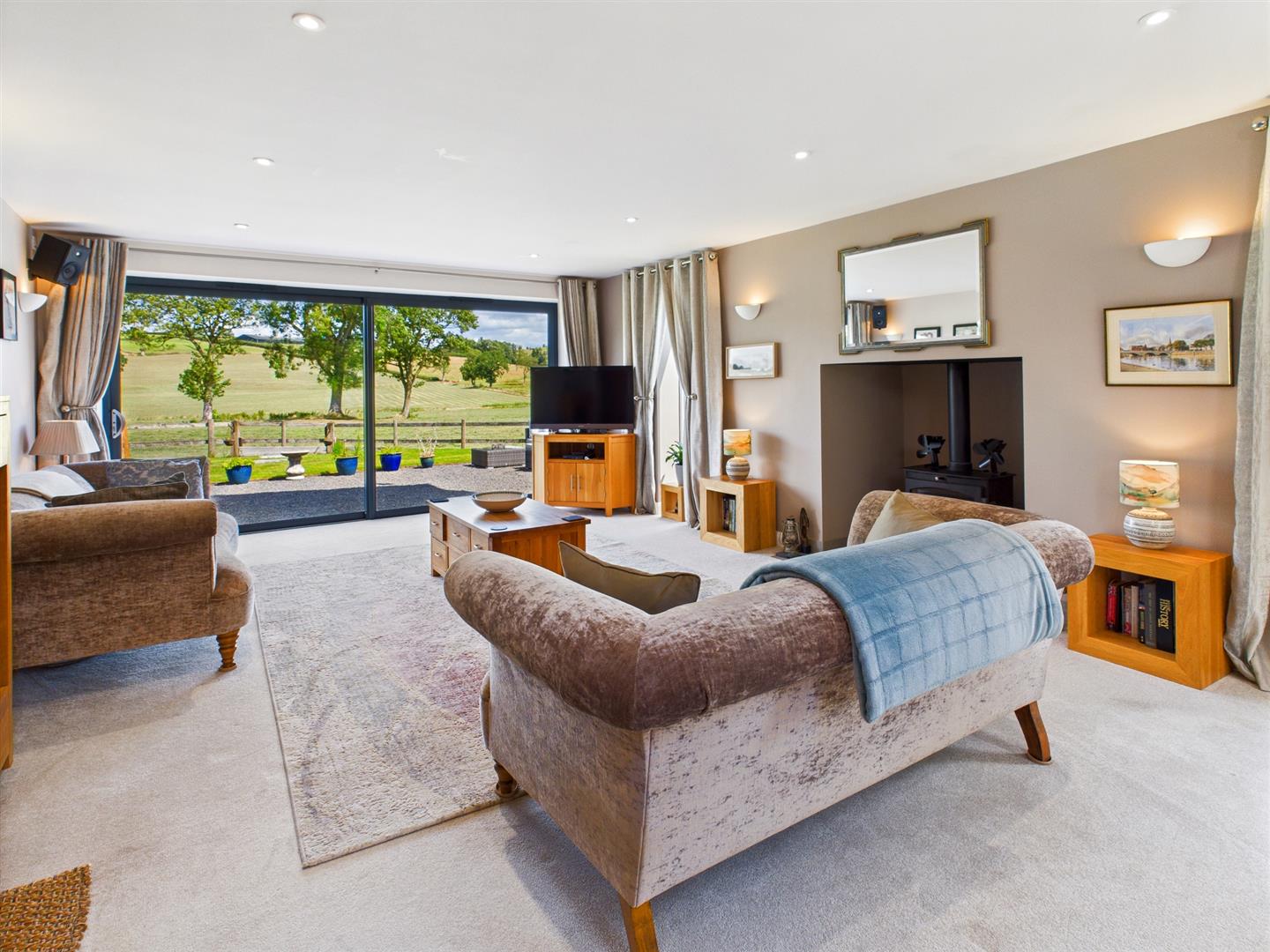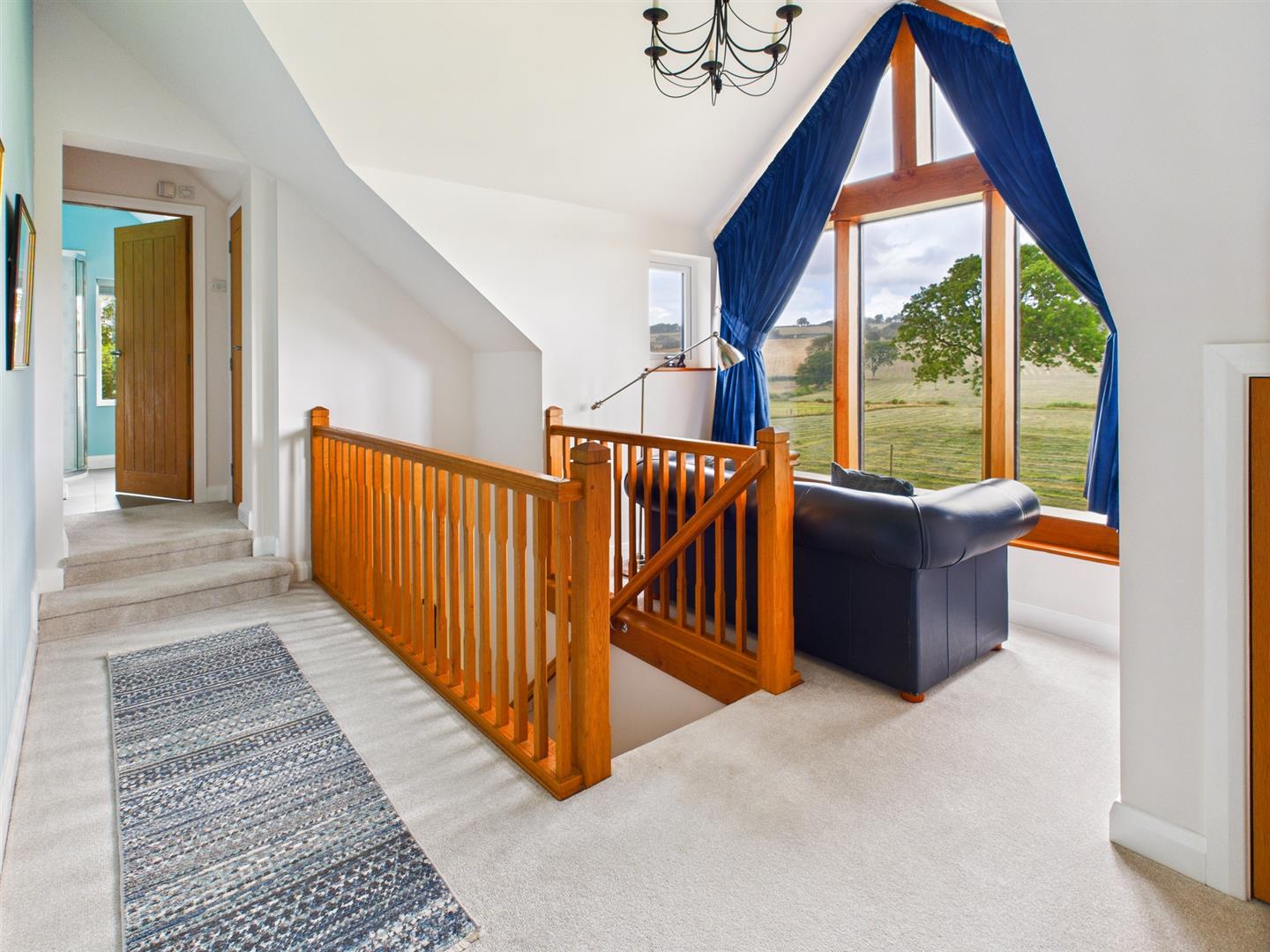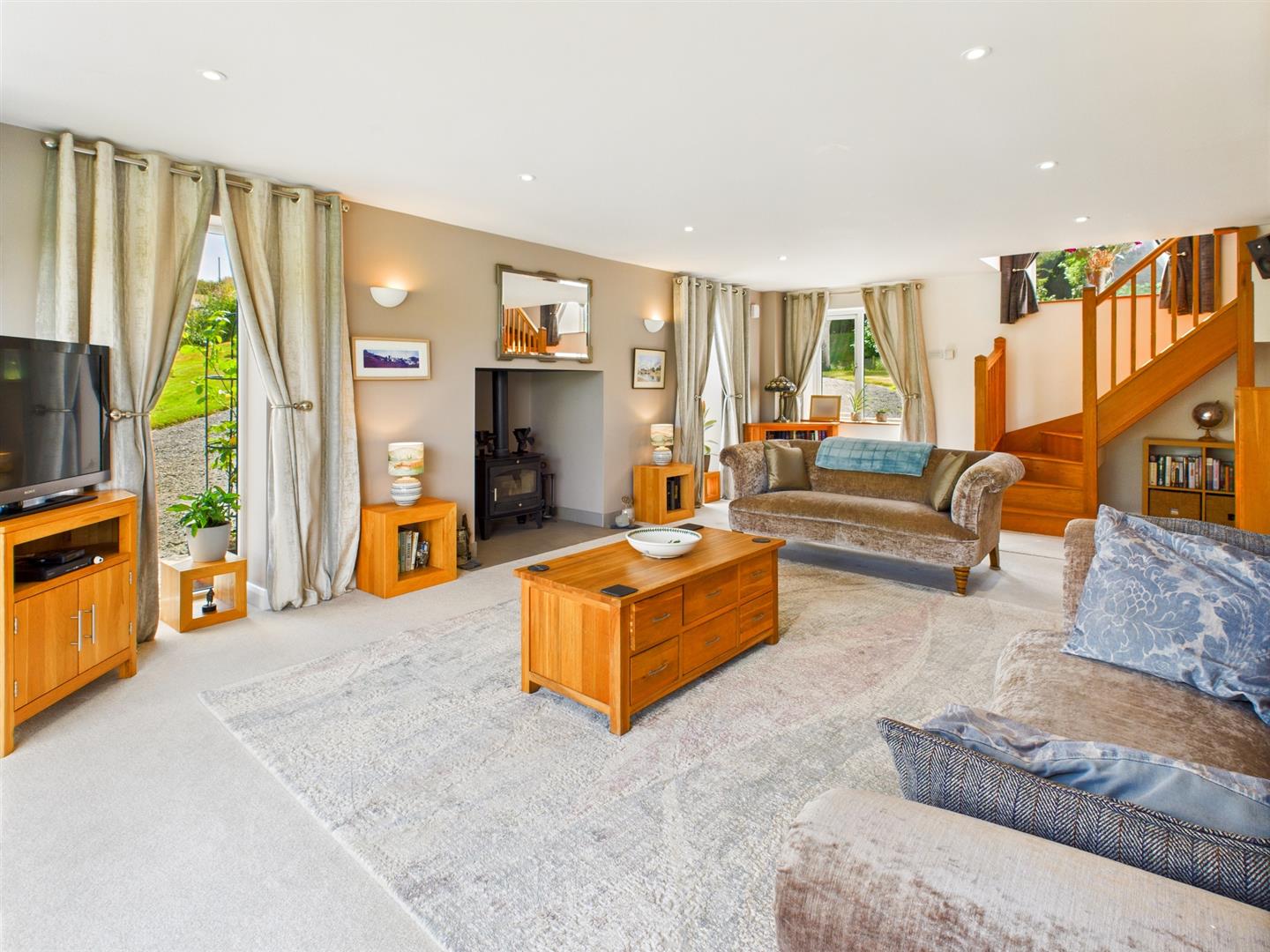 Triple aspect with superb far reaching countryside views, fireplace with inset wood-burning stove and tiled hearth, 5 amp circuit plugs controlled from main wall switch, wiring for 5.1 surround sound, satellite connection. Stairs to master suite with picture window.