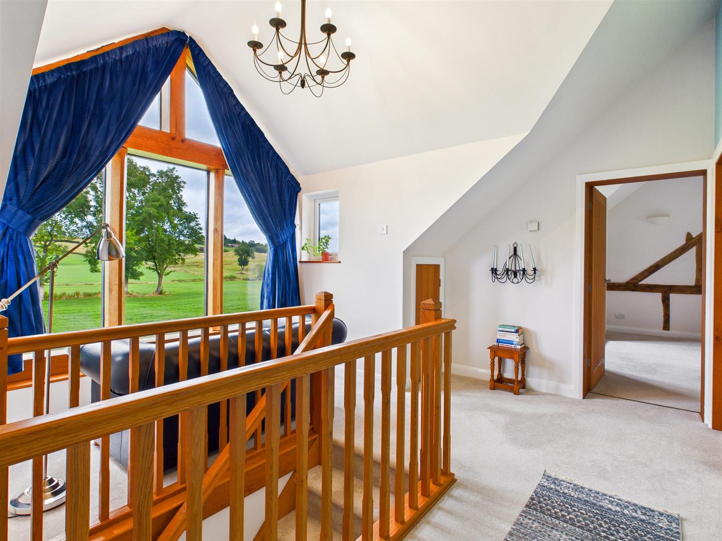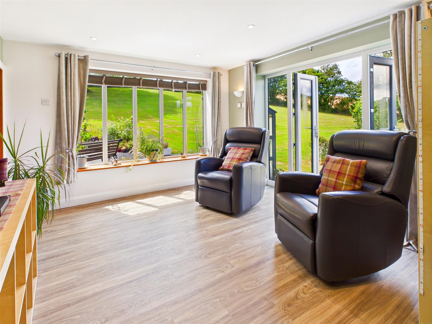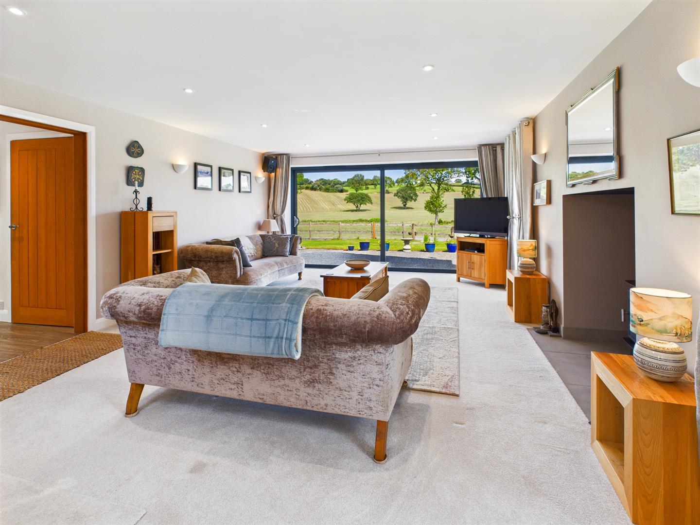 Triple aspect with superb far reaching countryside views, fireplace with inset wood-burning stove and tiled hearth, 5 amp circuit plugs controlled from main wall switch, wiring for 5.1 surround sound, satellite connection. Stairs to master suite with picture window.