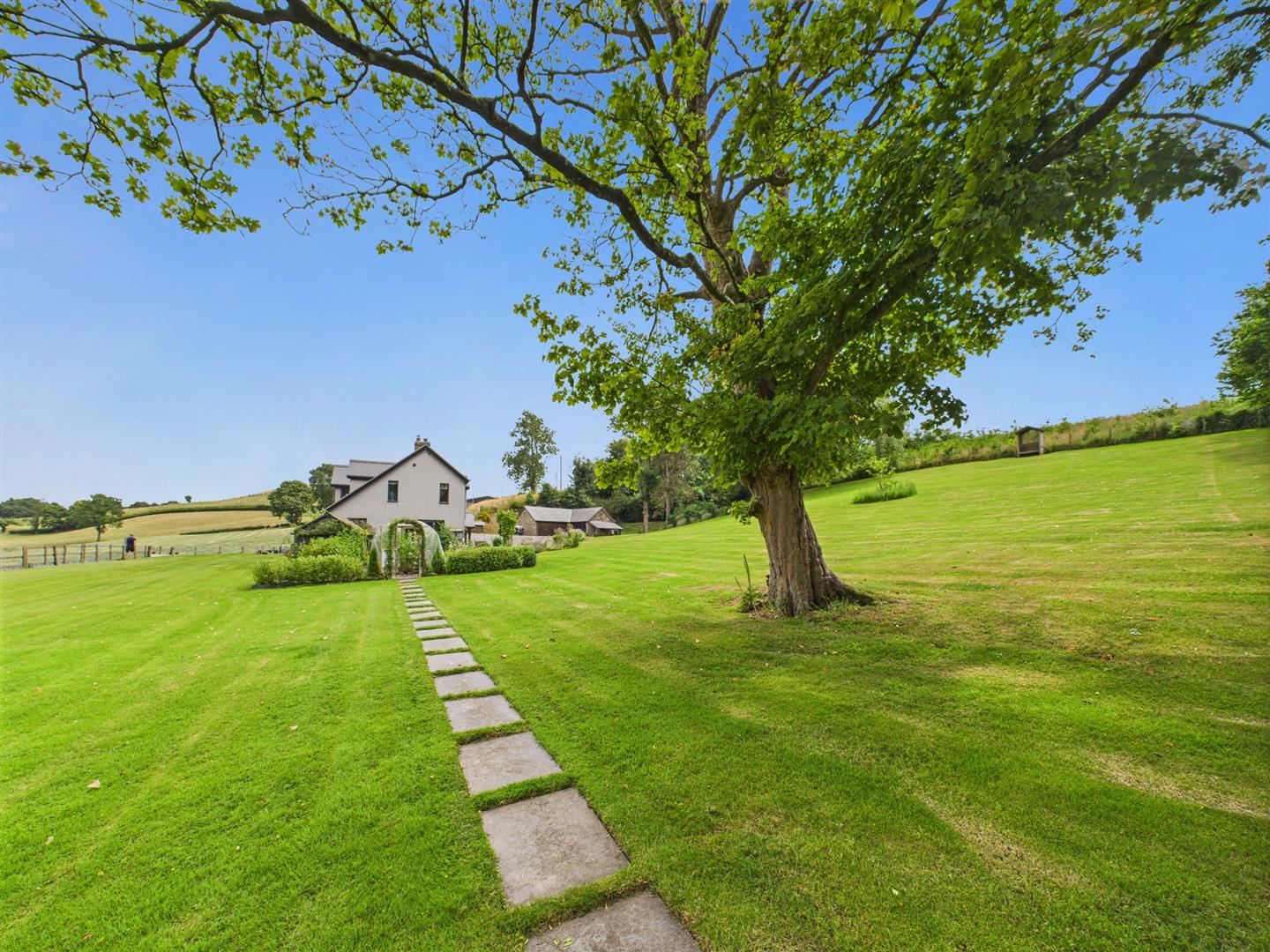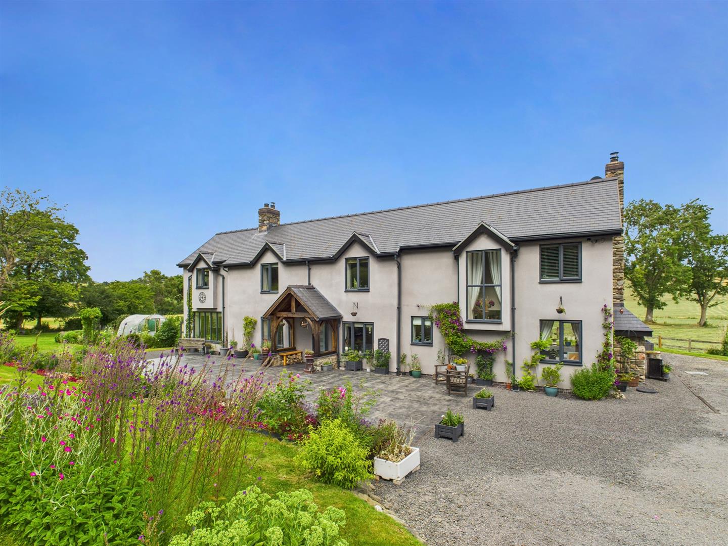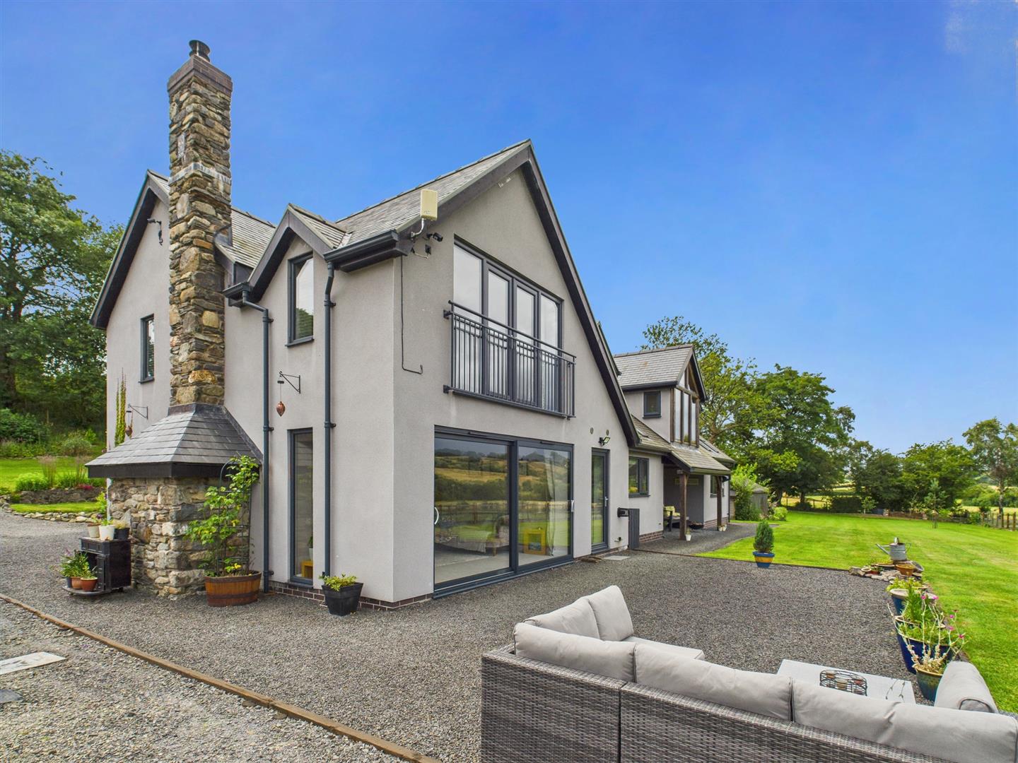 Ceunant is a magnificent country residence offering the ultimate blend of character, charm, and modern luxury. Nestled in a secluded setting amidst rolling countryside, this extensively renovated four-bedroom home boasts breathtaking panoramic views. Step inside and discover a seamless fusion of old and new. Original exposed beams and an impressive inglenook fireplace, while modern amenities like underfloor heating and high-end fittings ensure contemporary comfort. This immaculately presented property offers spacious and thoughtfully designed accommodation perfect for family living. The layout comprises a welcoming storm porch, a stunning kitchen/dining room, a practical utility room, a cloakroom, a comfortable lounge, a cozy snug, a formal dining/family room, a dedicated study, and a relaxing veranda. Ascend to the galleried landing, bathed in natural light from a picture window, and you'll find four generously sized double bedrooms, including a master suite with an en-suite bathroom and walk-in wardrobe, as well as a well-appointed family bathroom. Outside, the wrap-around gardens extend to approximately 1.1 acres. Enjoy lush lawns, mature trees, a charming cottage garden complete with a polytunnel and raised beds, ornamental shrubs, climbing plants, and abundant fruit bushes. Several al fresco dining areas provide idyllic spots to soak up the scenery, while the patio is bordered by beautifully stocked beds filled with shrubs and roses. A large, detached building offers ample parking space, as well as a garage, workshop, gym/games room, and woodstore. This versatile building presents excellent potential for conversion into an annexe, subject to the necessary planning consents. Located in a peaceful, rural setting, Ceunant is conveniently situated just 2.5 miles from the charming town of Llanfair Caereinion, offering a range of amenities including shops, a post office, primary and high school (with a school mini-bus stop at the end of the drive), a leisure centre, pubs, hair salons, doctors/pharmacy, a dentist, a petrol station, take-away restaurants, and even a steam railway station with tea rooms! The larger towns of Welshpool and Newtown are also within easy reach (approximately 9 miles), while Shrewsbury lies just 30 miles to the east. providing a more comprehensive selection of amenities. For those seeking seaside adventures, the popular destination of Aberdovey is approximately 43 miles to the west.