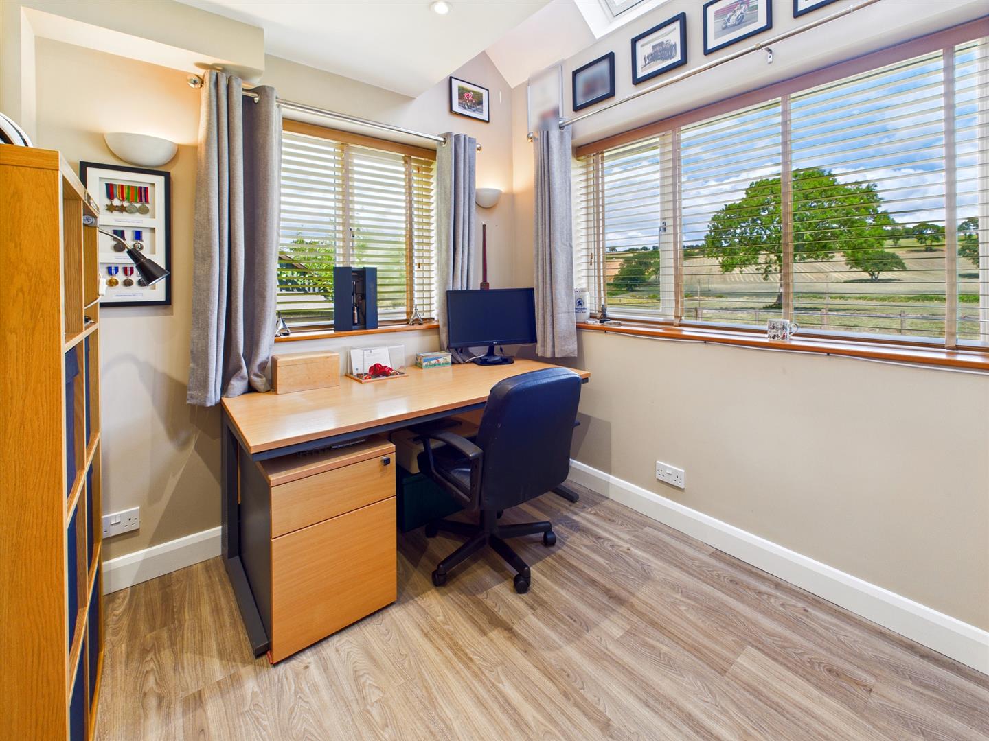 Picture window with magnificent far reaching countryside views, bespoke curtains, seating area, loft access and 2 storage cupboards.