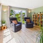 Dual aspect with window to the front and French doors to the side enjoying views over the gardens and ‘LVT by artist’ flooring. Door to hallway with staircase to the first floor and door to: