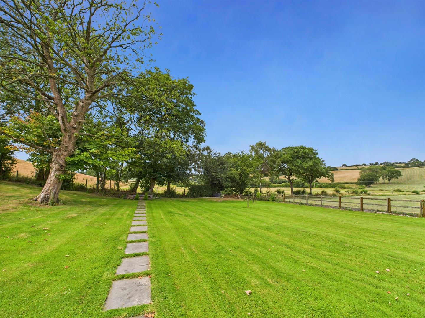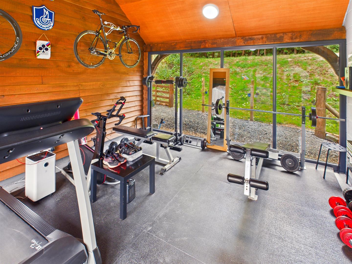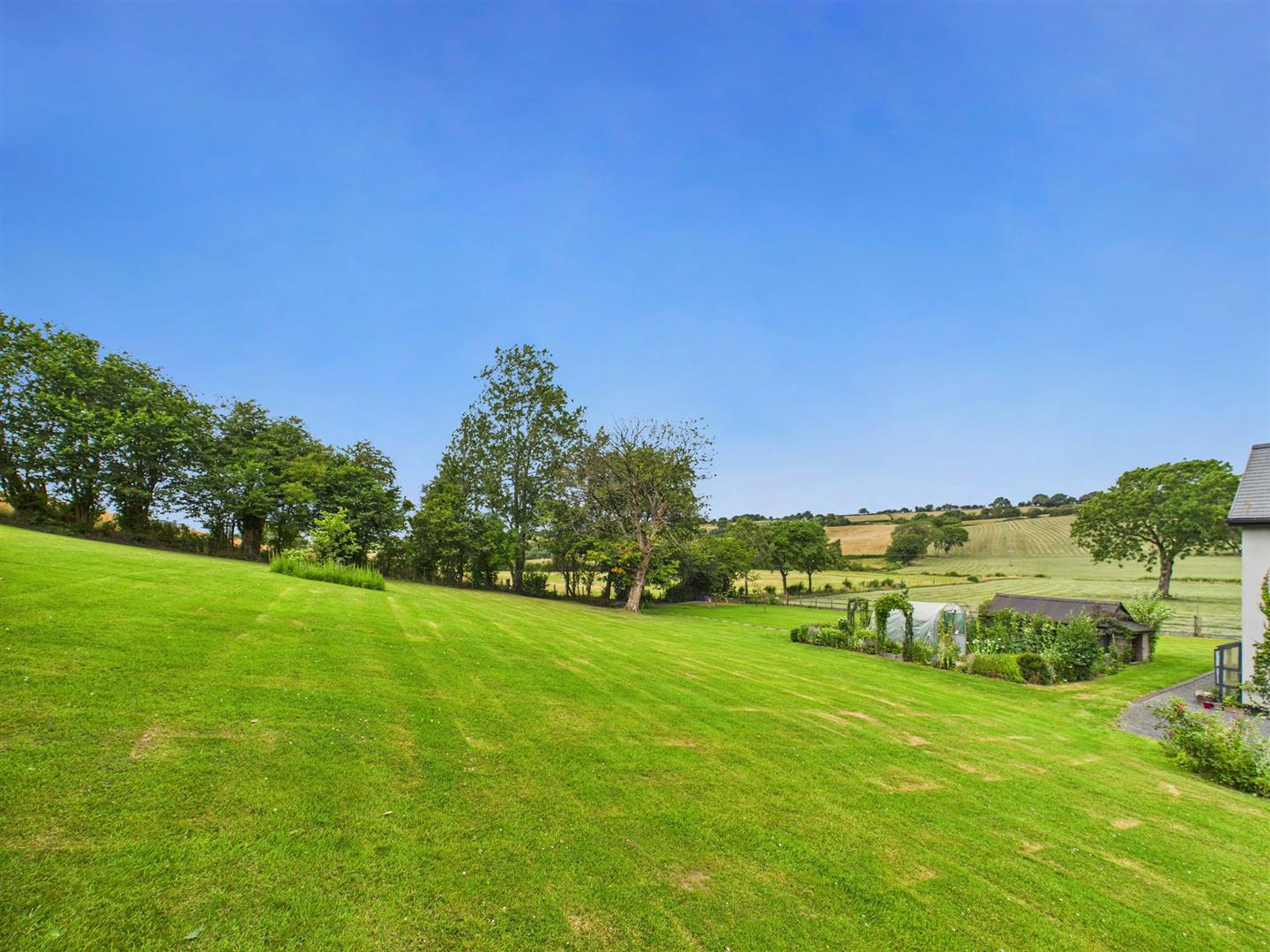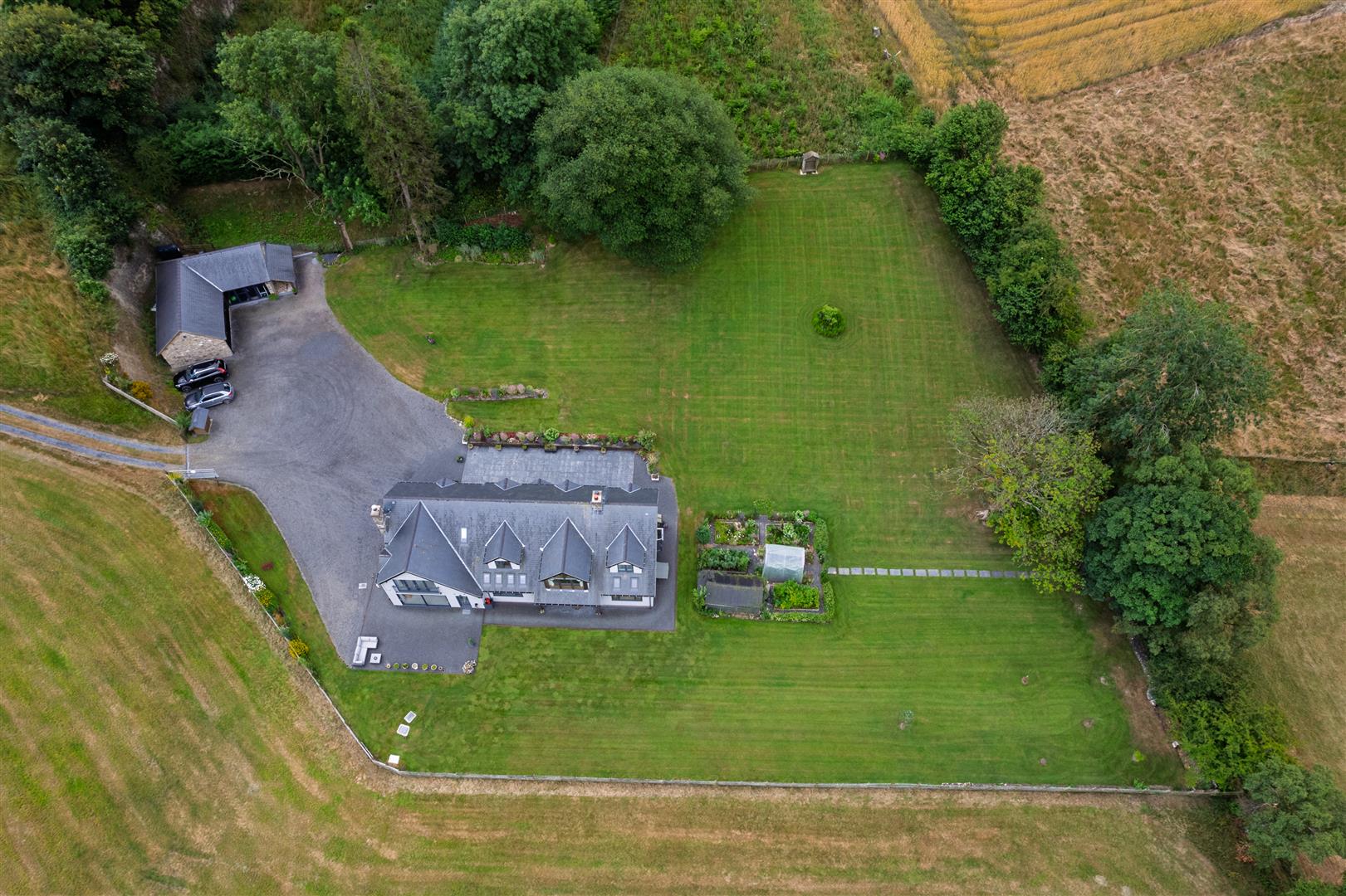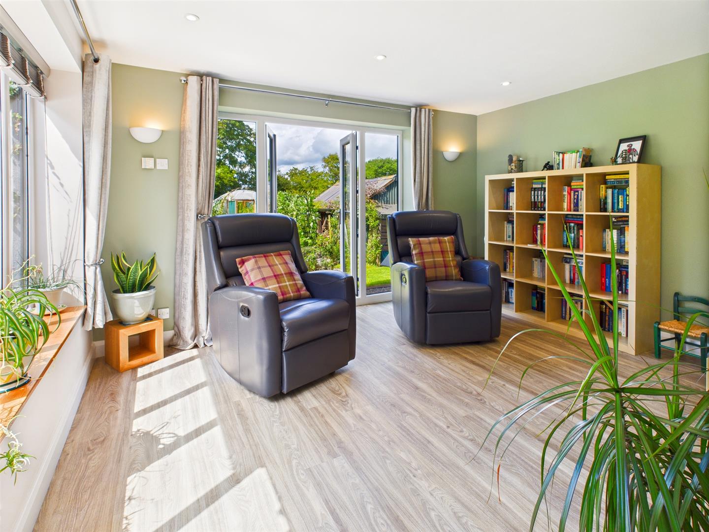 The site extends to about 1.1 acres in all. There is gated access onto a large gravelled parking and turning space, leading to the garage block. The extensive grounds include a 90 square meter patio with a sleeper-walled flower border, a selection of fruit trees and bushes, a campfire cooking area, mature trees, raised beds and polytunnel. There are also gravelled seating areas providing plenty of space for al fresco dining. The original pig sty building provides additional storage space/ potting shed. There is provision for outside lighting in parts of the garden and wiring for a jacuzzi. The house has been adapted to run on an external generator (if needed).