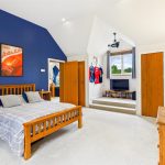 Juliette double doors and window to the side with stunning countryside views, high ceiling, built in double cupboard and cupboard (can connect to bedroom 2). DRESSING AREA - with shaver charging sockets, Velux window and door to: WALK IN WARDROBE.