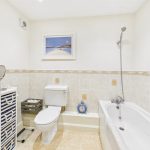 Half tiled walls, fitted panelled bath, W.C. and wash hand basin and radiator.