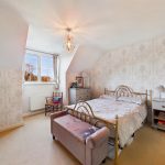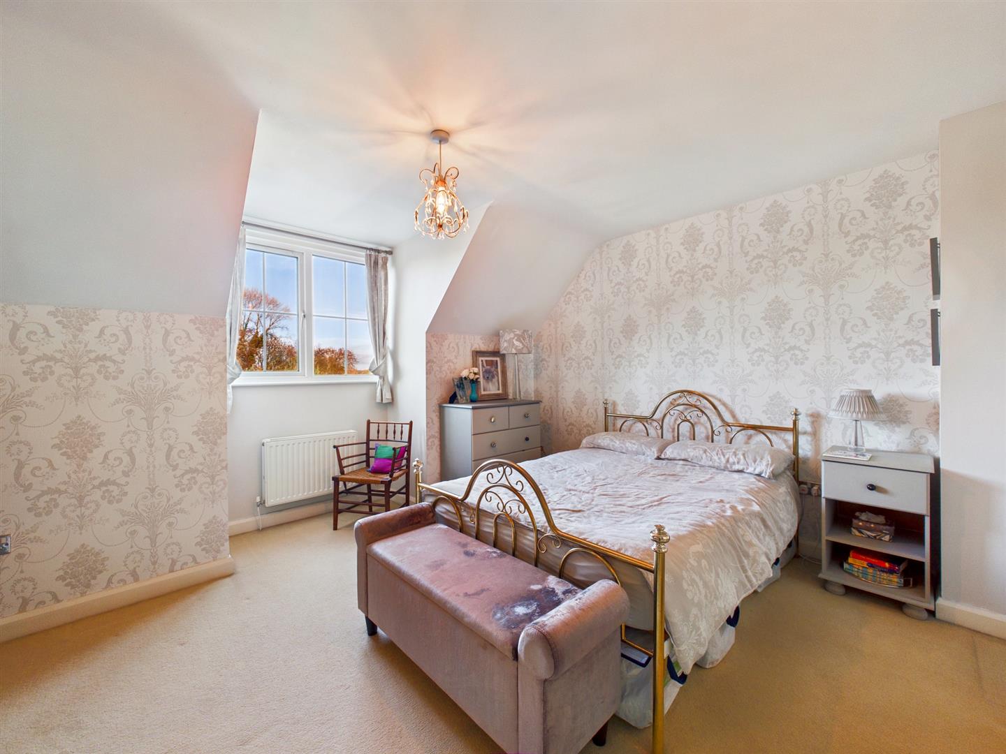 L shaped bedroom, front aspect window, and radiator.