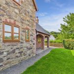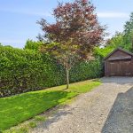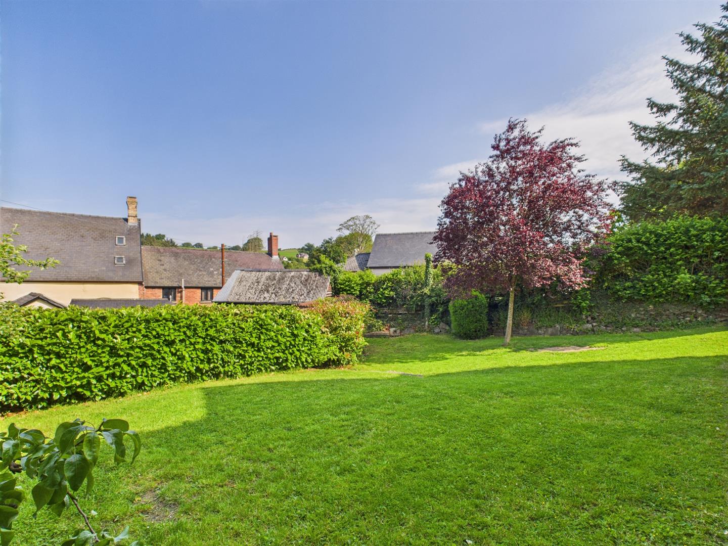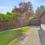 Gravel driveway providing parking and turning for numerous cars. The gardens are to the front and side and are mainly laid to lawn with flower and shrub borders and a
