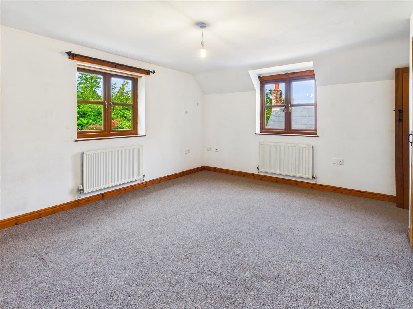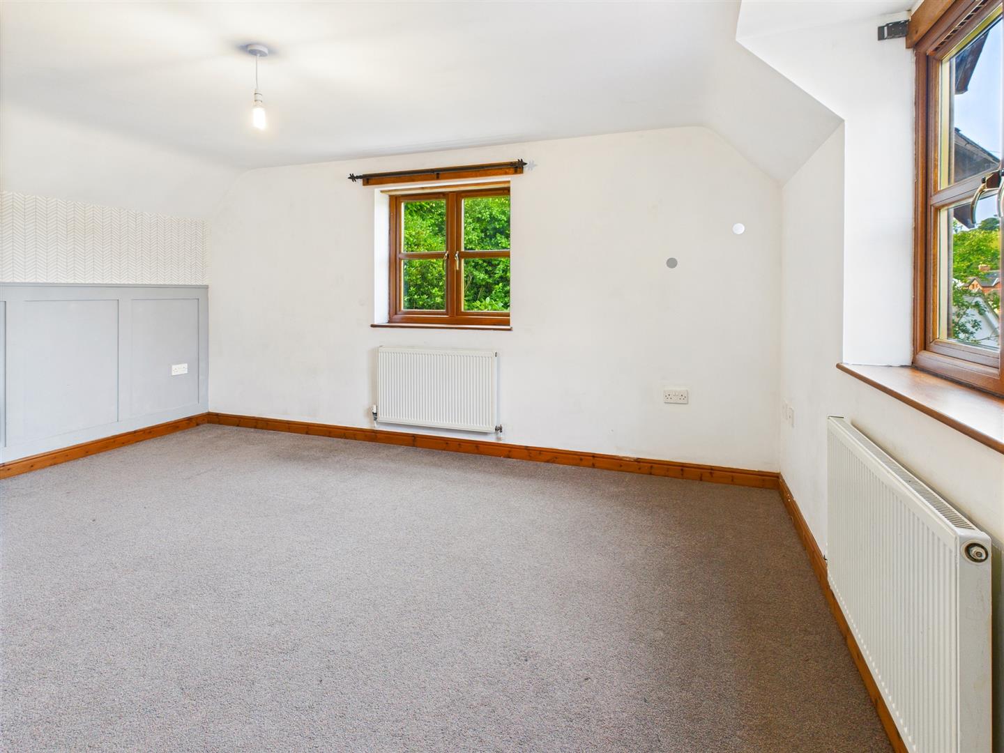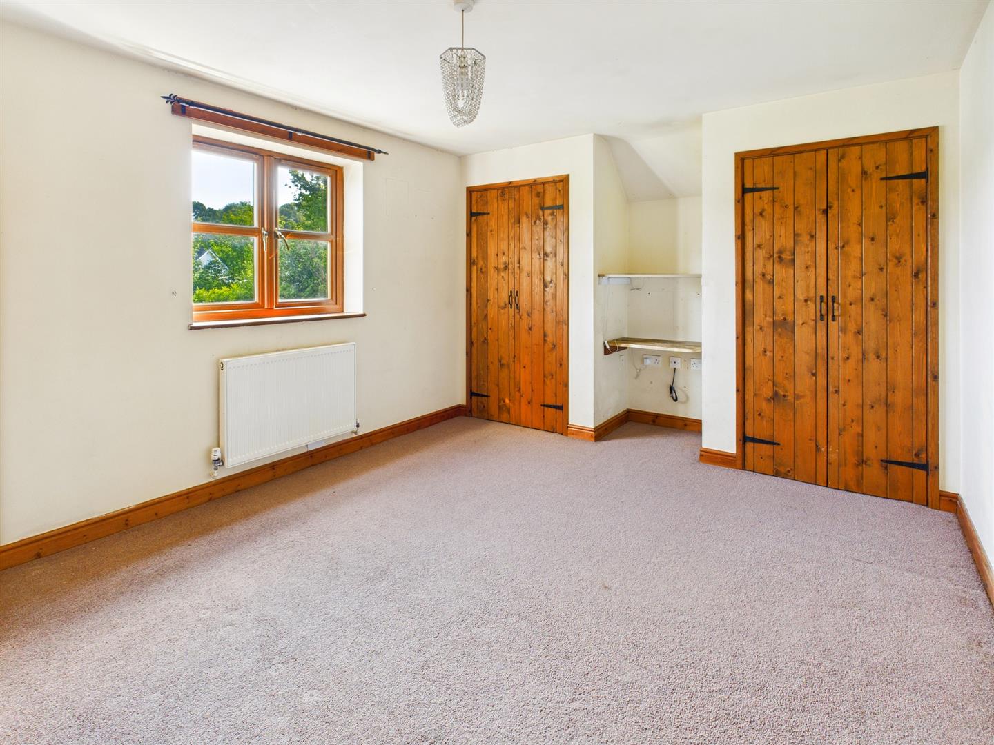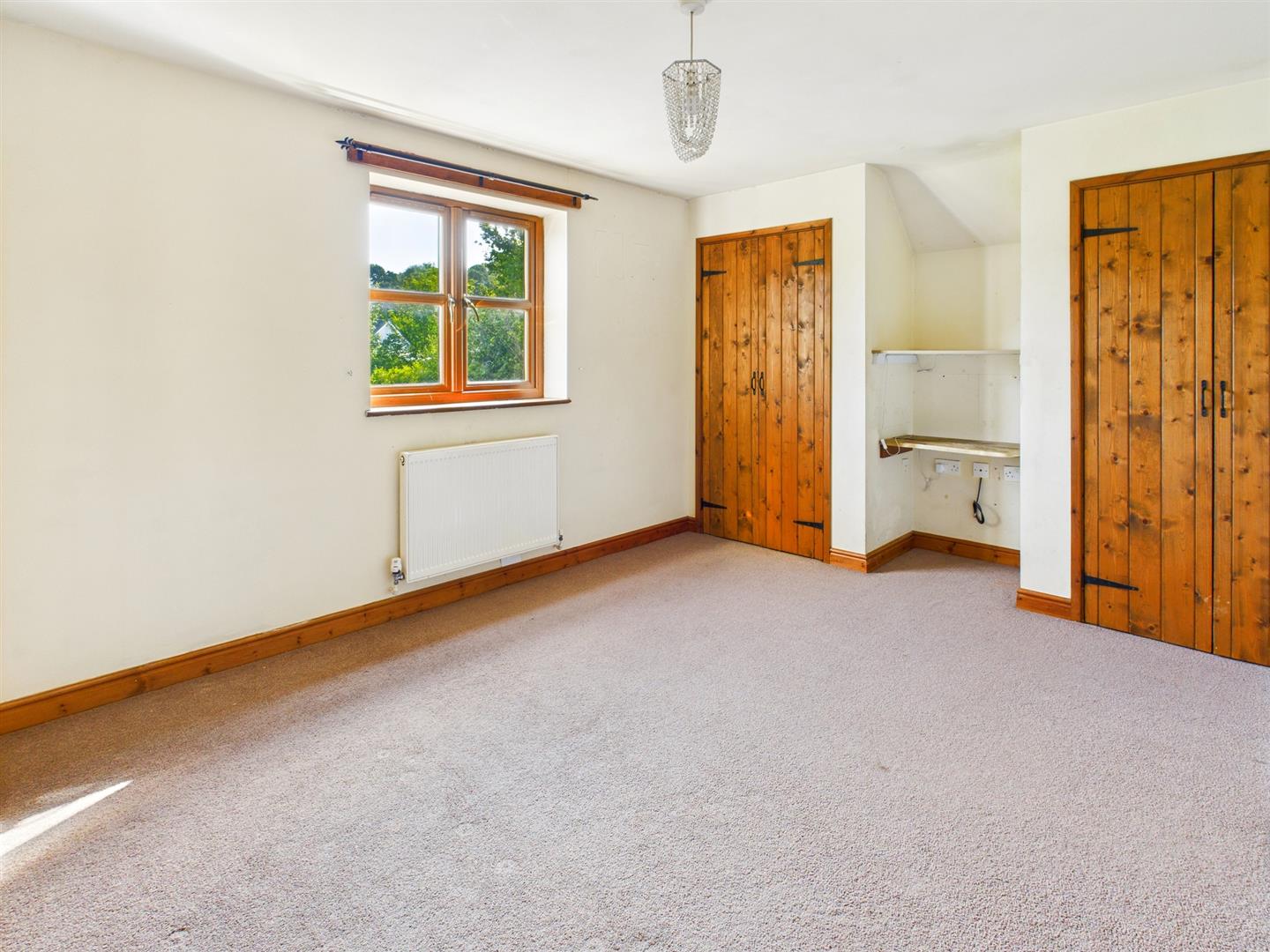 Dual aspect and enjoying views towards open countryside, wood panelling to 1 wall, built in cupboard and radiator.