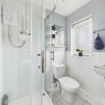 With shower cubicle with recently replaced electric shower unit, wash hand basin and WC. Complementary tiled surrounds, heated towel rail, window to the rear.