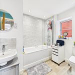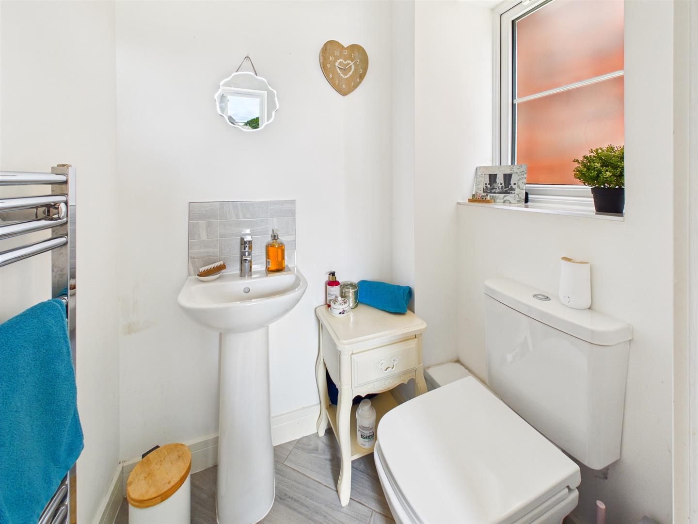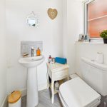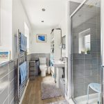 With low flush wc, wash hand basin and heated towel rail.