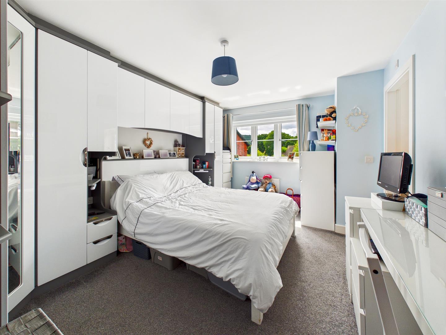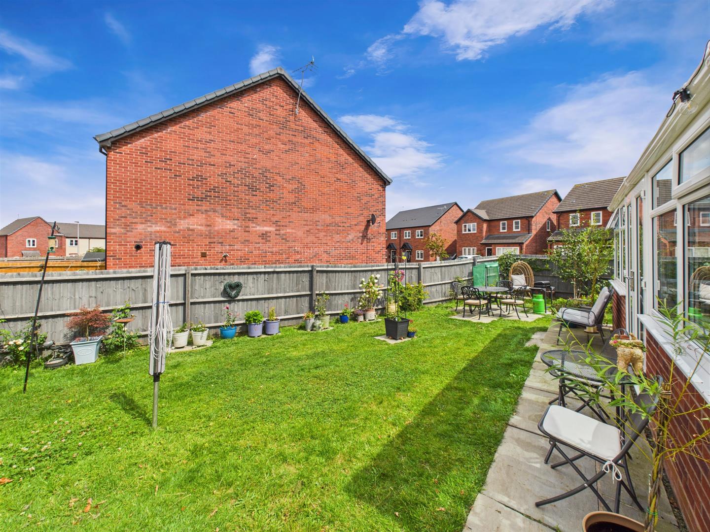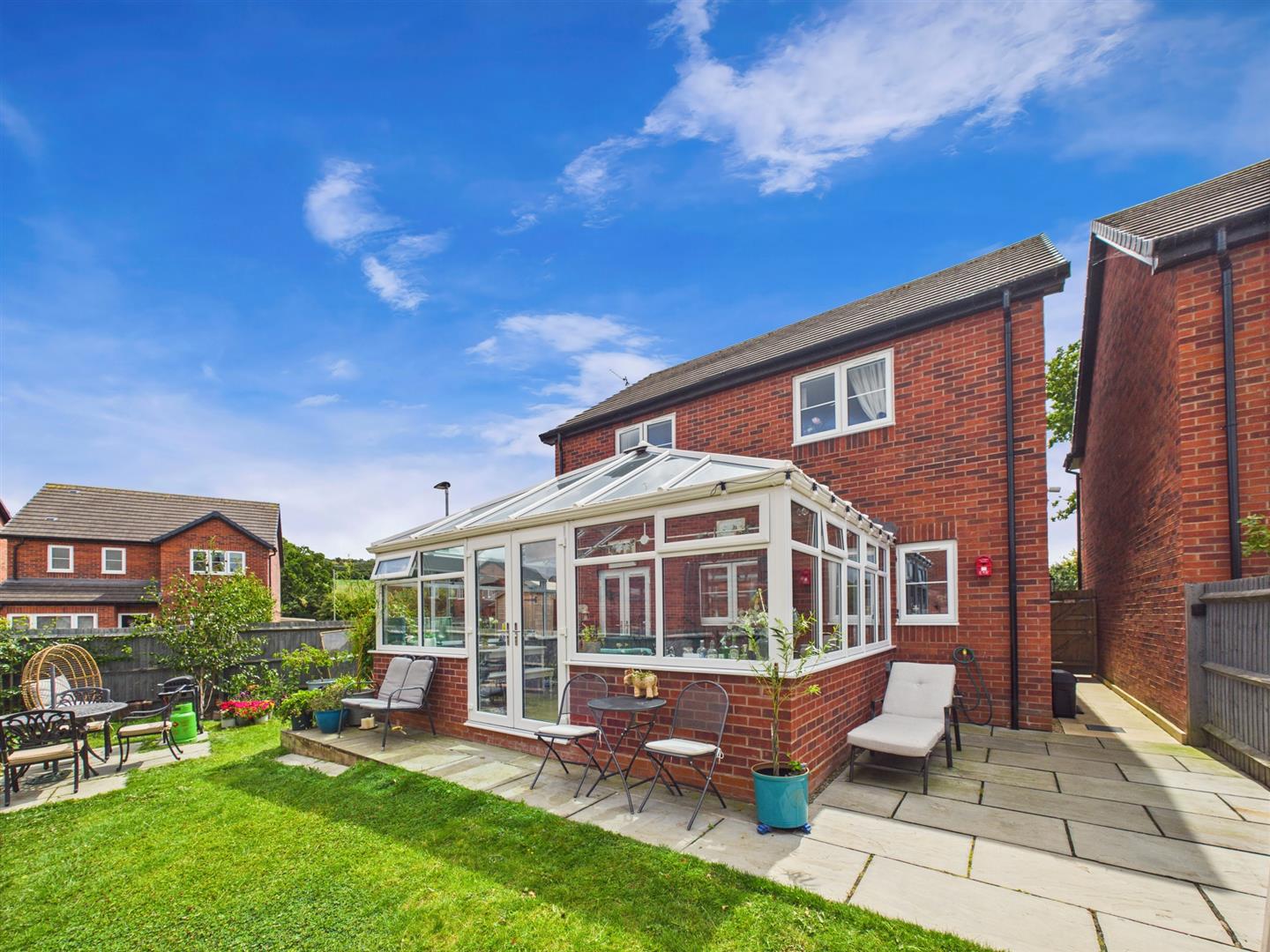 The property is situated in a private cul de sac location, to the front the property benefits from lawn area with driveway for parking and Ev charging point. The driveway leads to a STORE with up and over door. Gated side access leads to the rear garden which is mainly laid to lawn with paved patio and fully enclosed with fencing.